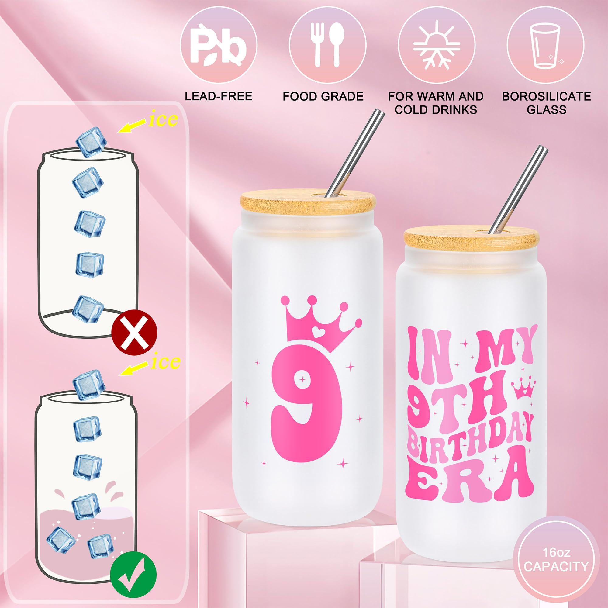 đă9 Year Old Beautiful Teen Girl GiftsăBirthday 6 piece set includes 1 x exquisite patterns, fashionable handbag, 1 x In my birthday era makeup bag, 1 x 16 Oz can glass with lid and straw, 1 x Socks made of pure cotton, unique design and cute style, 1 x heartfelt congratulations card on kraft paper and 1 x stylish pearl necklace with a souvenir card.