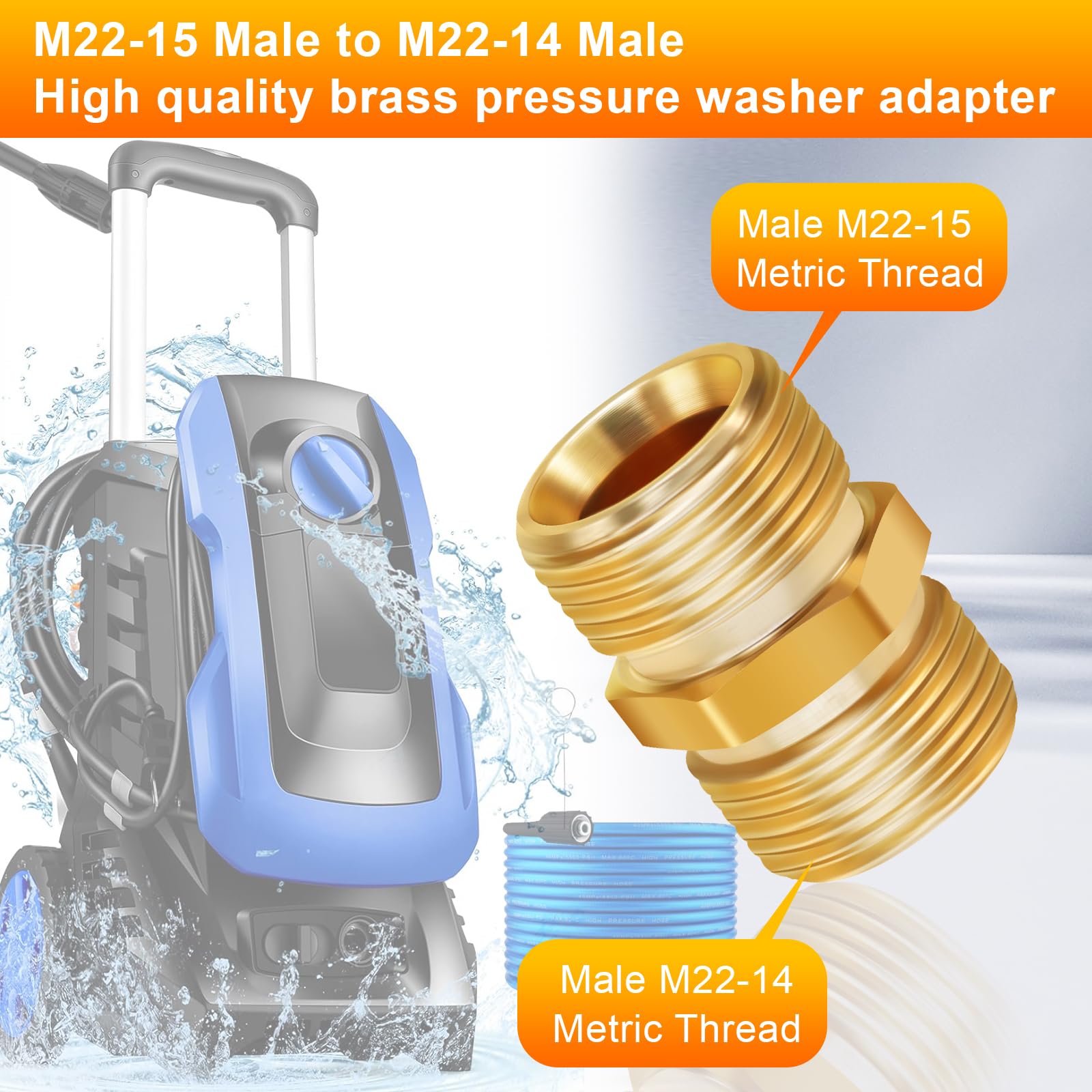 [Compatibility & Customer Support] Compatible with M22-14mm pressure washer hoses (not for M22-15mm hoses used by Sun Joe, AR Blue, and some electric washers). Double-check your hose size before purchase; if unsure, contact us with your washer’s brand and model for professional confirmation and technical support