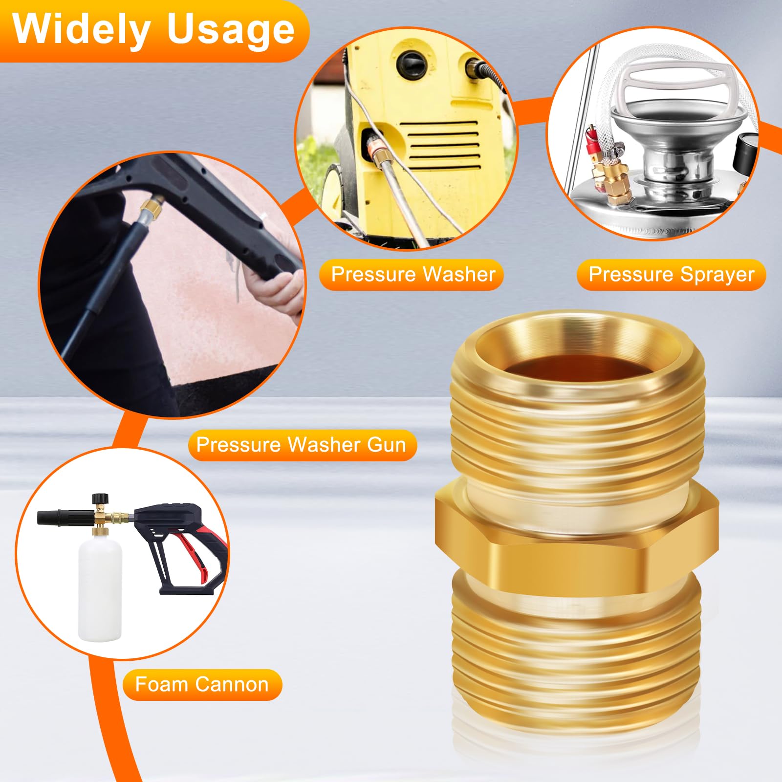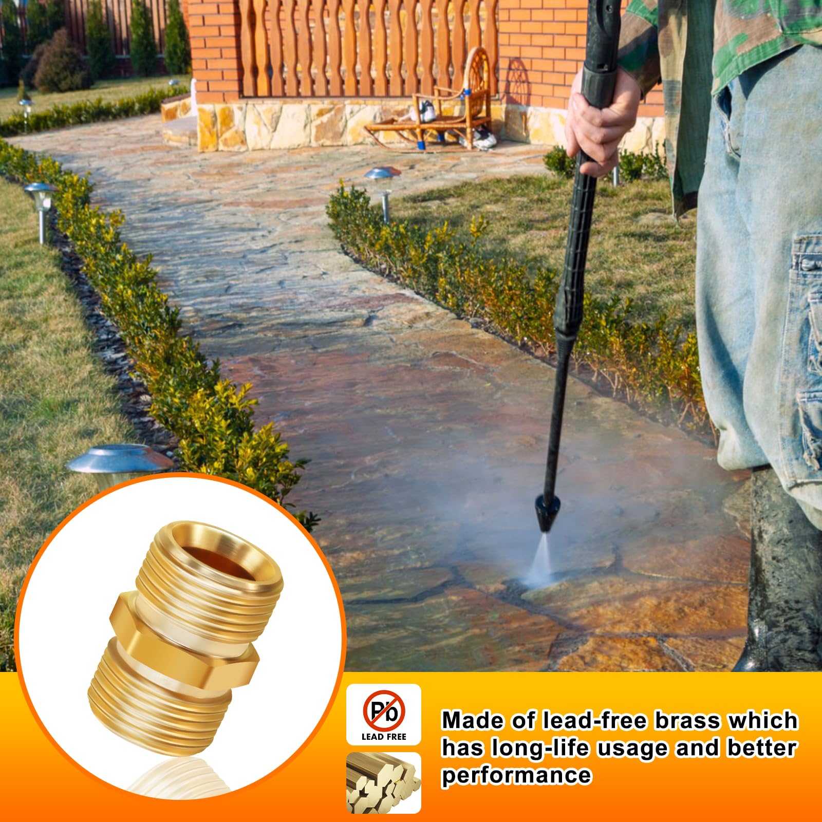 [Easy Installation & Secure Seal] Equipped with a built-in silicone gasket, the coupler enables effortless tightening and loosening for smooth, secure connections. No complex tools or additional sealing materials required—extend your pressure washer hose quickly and enjoy reliable leak-proof performance