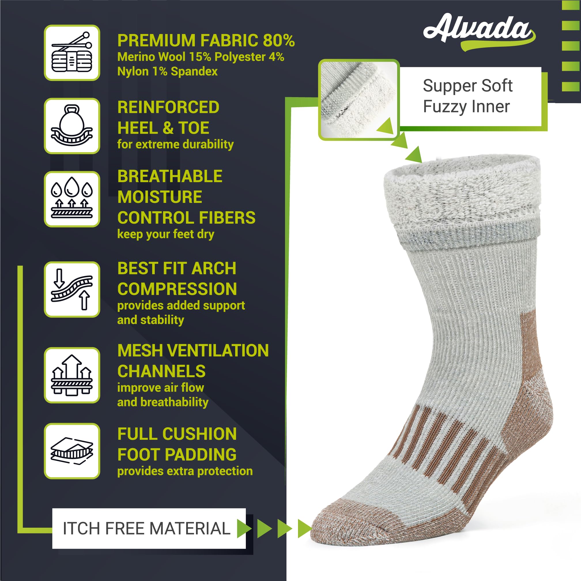 MAKE HIKING A COMFORTABLE EXPERIENCE These Merino wool hiking socks are built to provide you with total support and comfort during your hiking trips, no matter the weather. Each pair of these hiking boot socks is ideal for the rugged terrain, allowing these to be great mens or women's hiking socks