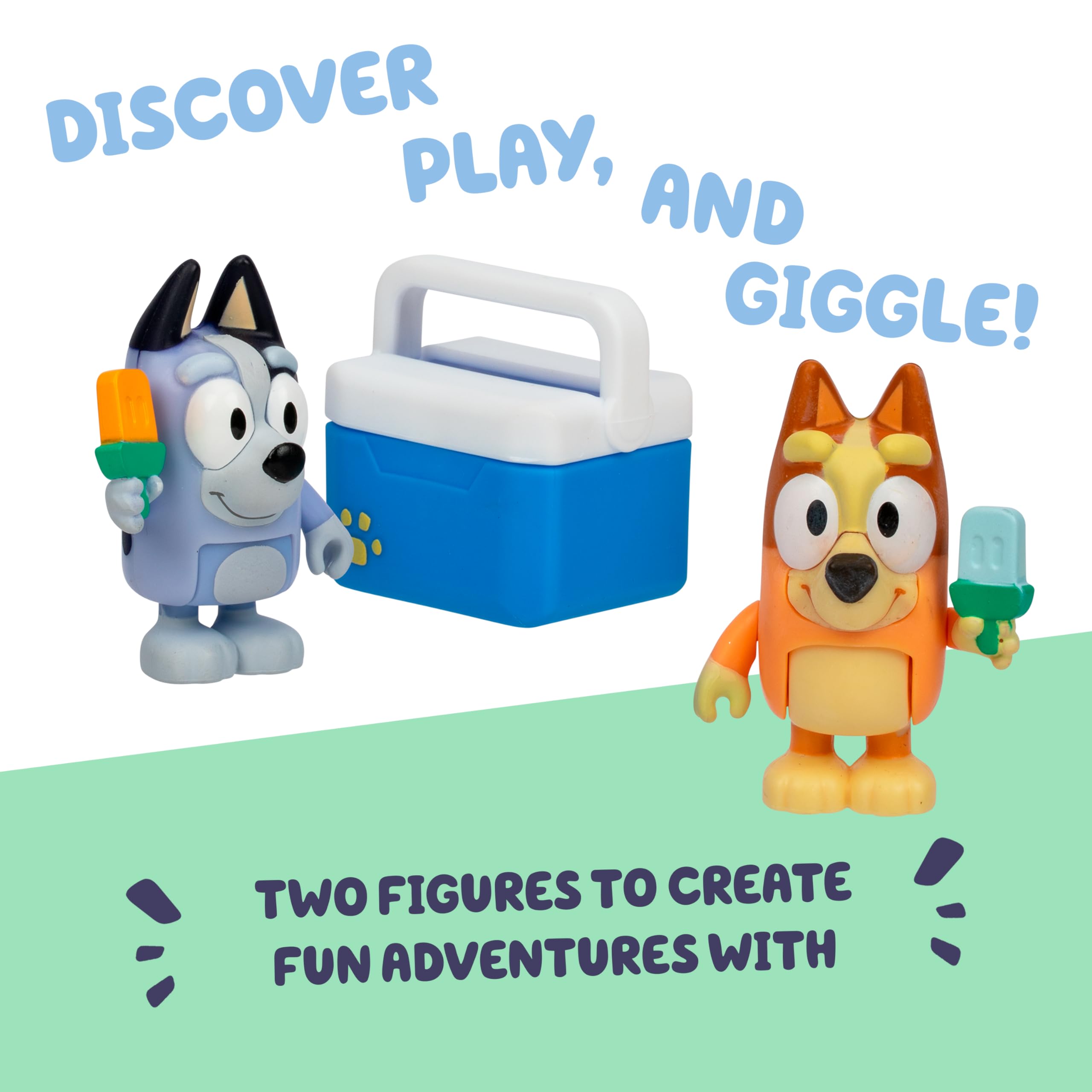 Inspired by Bluey's TV Show: Bluey summer toys lets kids recreate scenes from Bluey’s episodes or invent their own summertime stories; it's a great way to boost storytelling, creativity, and character roleplay with a 2-pack Bluey toy figure playset