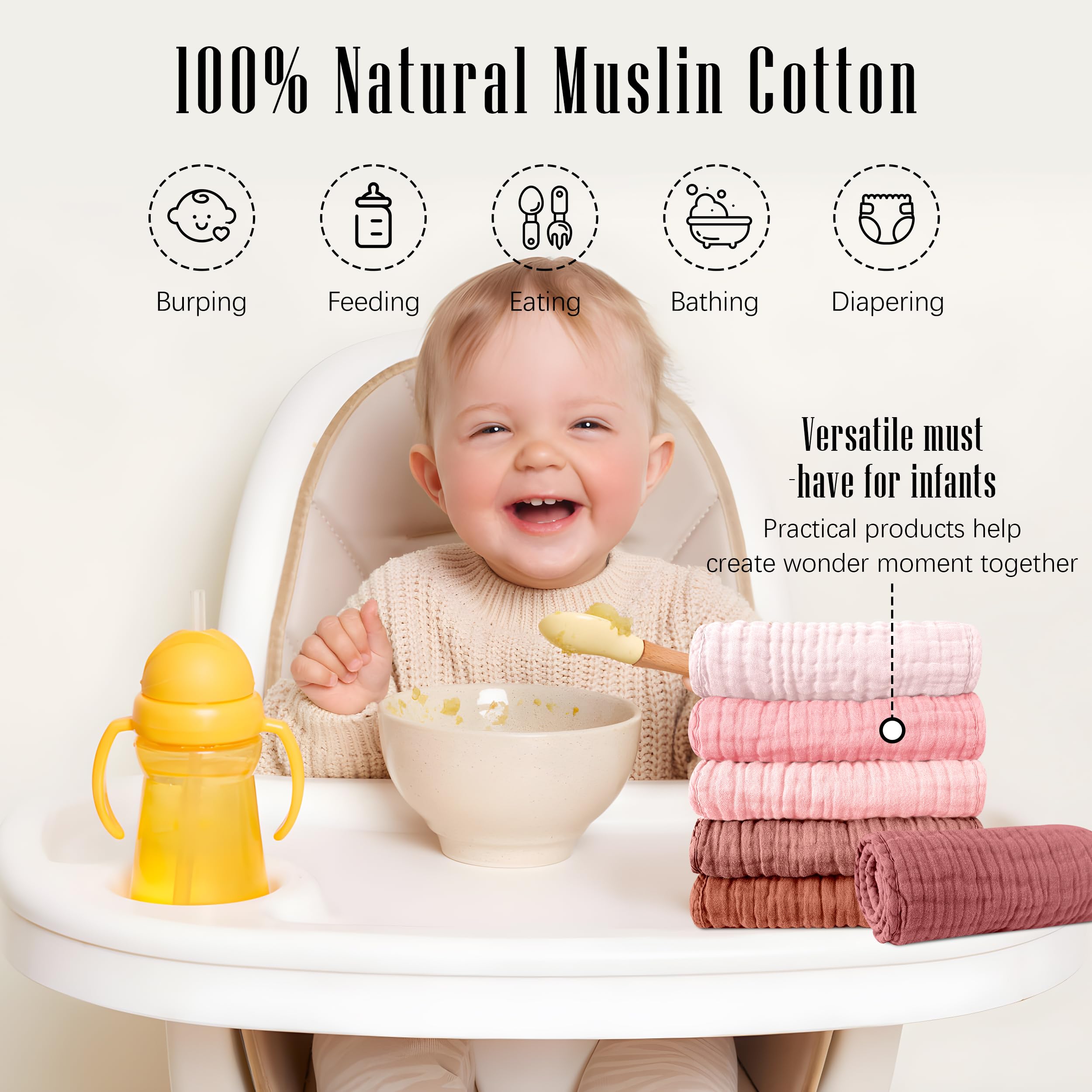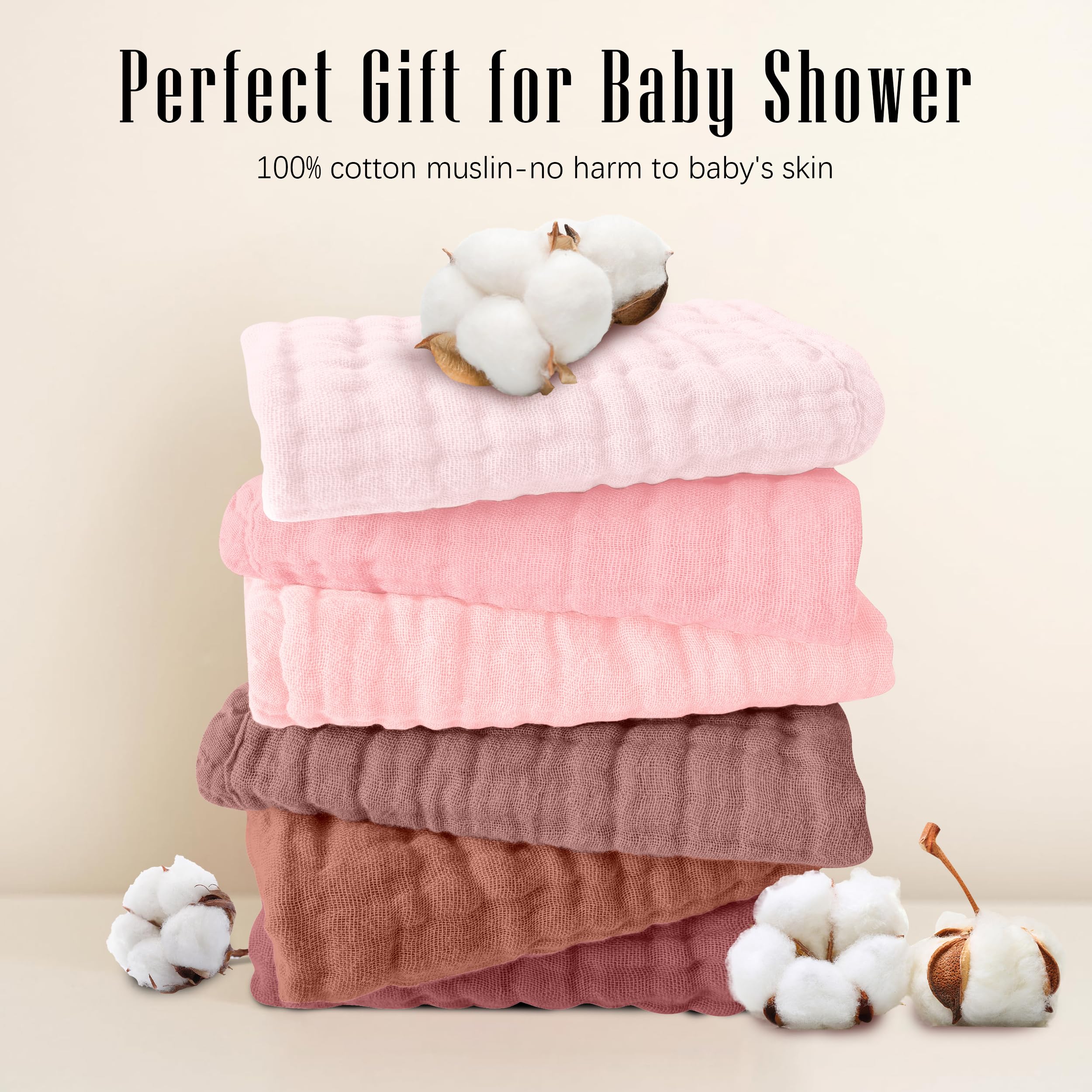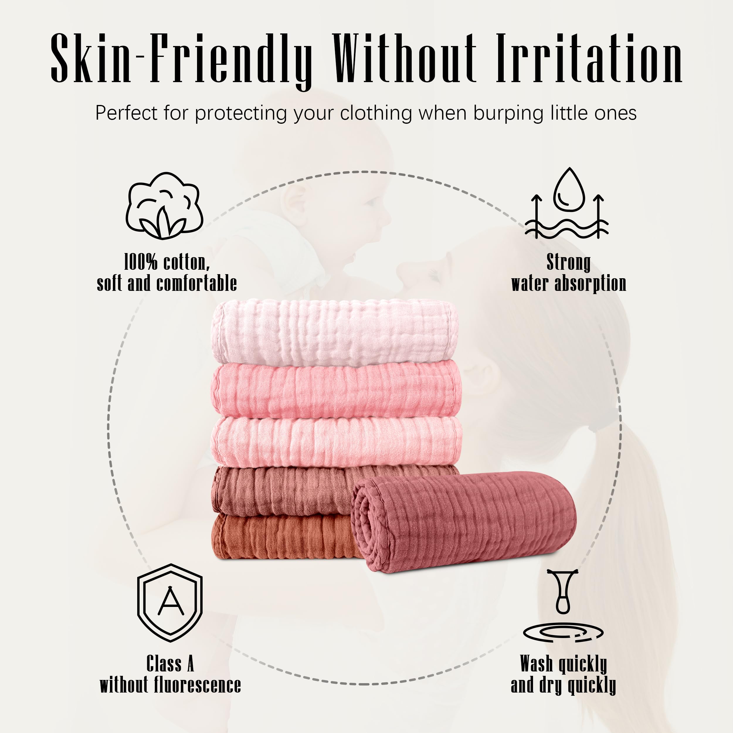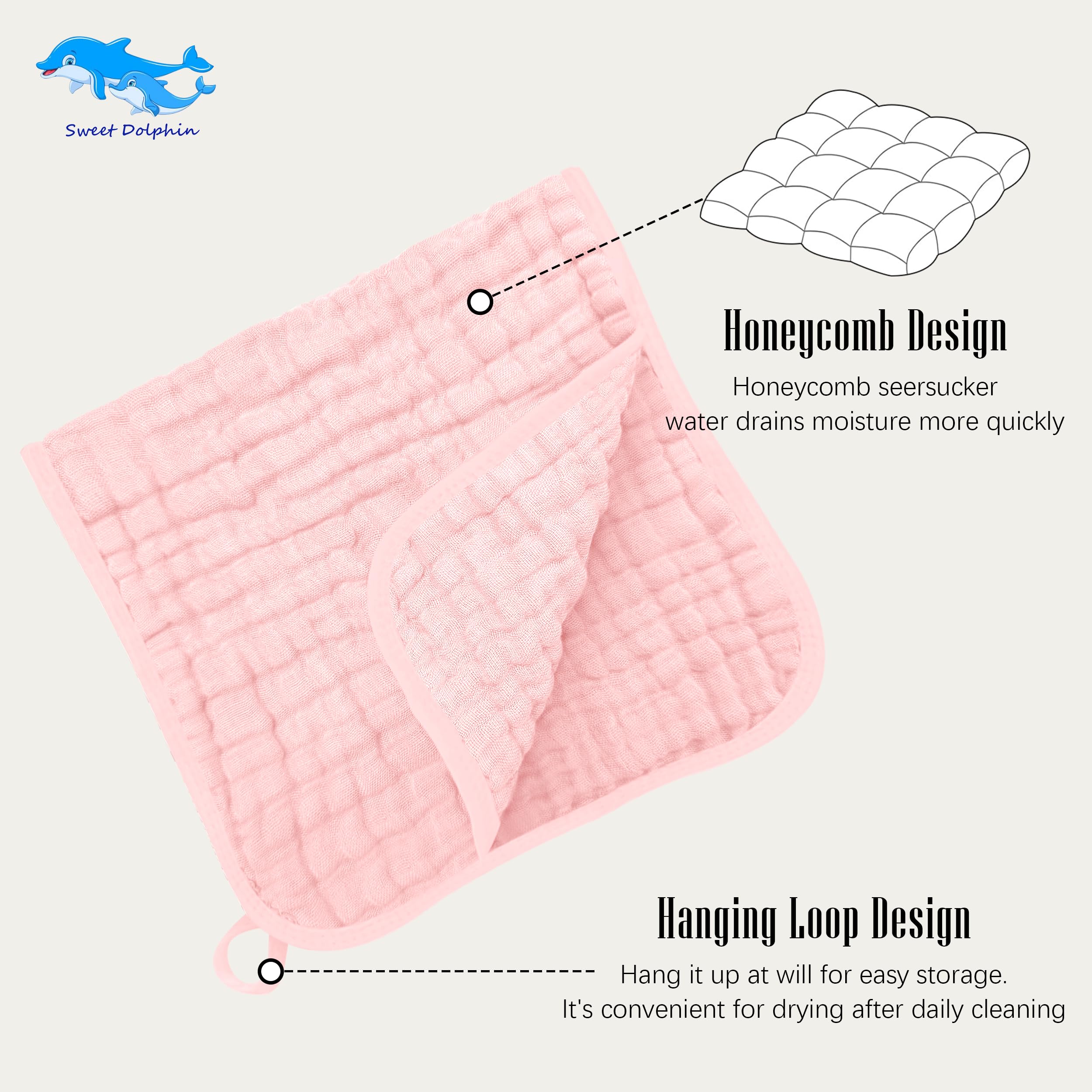 SWEET DOLPHIN 12 Pack Muslin Burp Cloths, 20" X10", Dewy Petal
