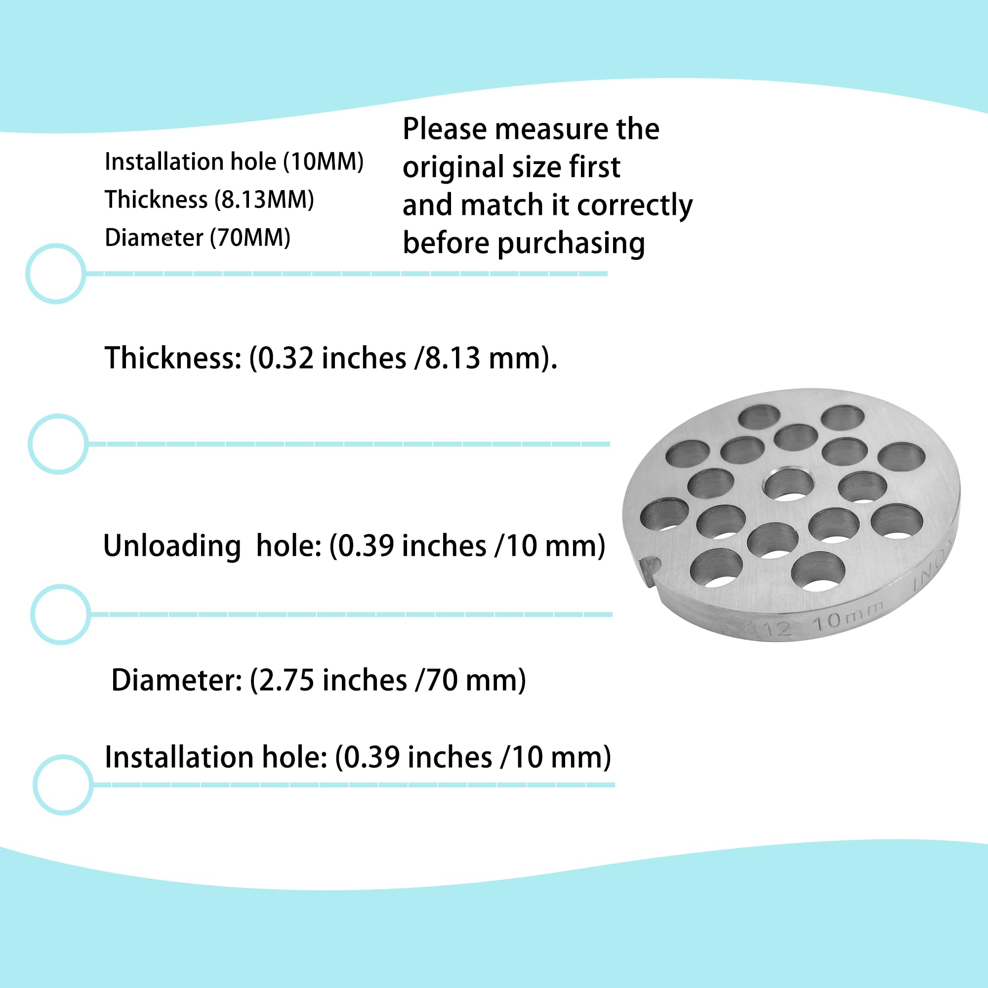 Premium Quality Replacement: Upgrade your meat grinder with our #12 Stainless Steel Disc Replacement. Crafted from high-quality stainless steel, this plate ensures durability and longevity, providing a reliable replacement for your worn-out or damaged part.