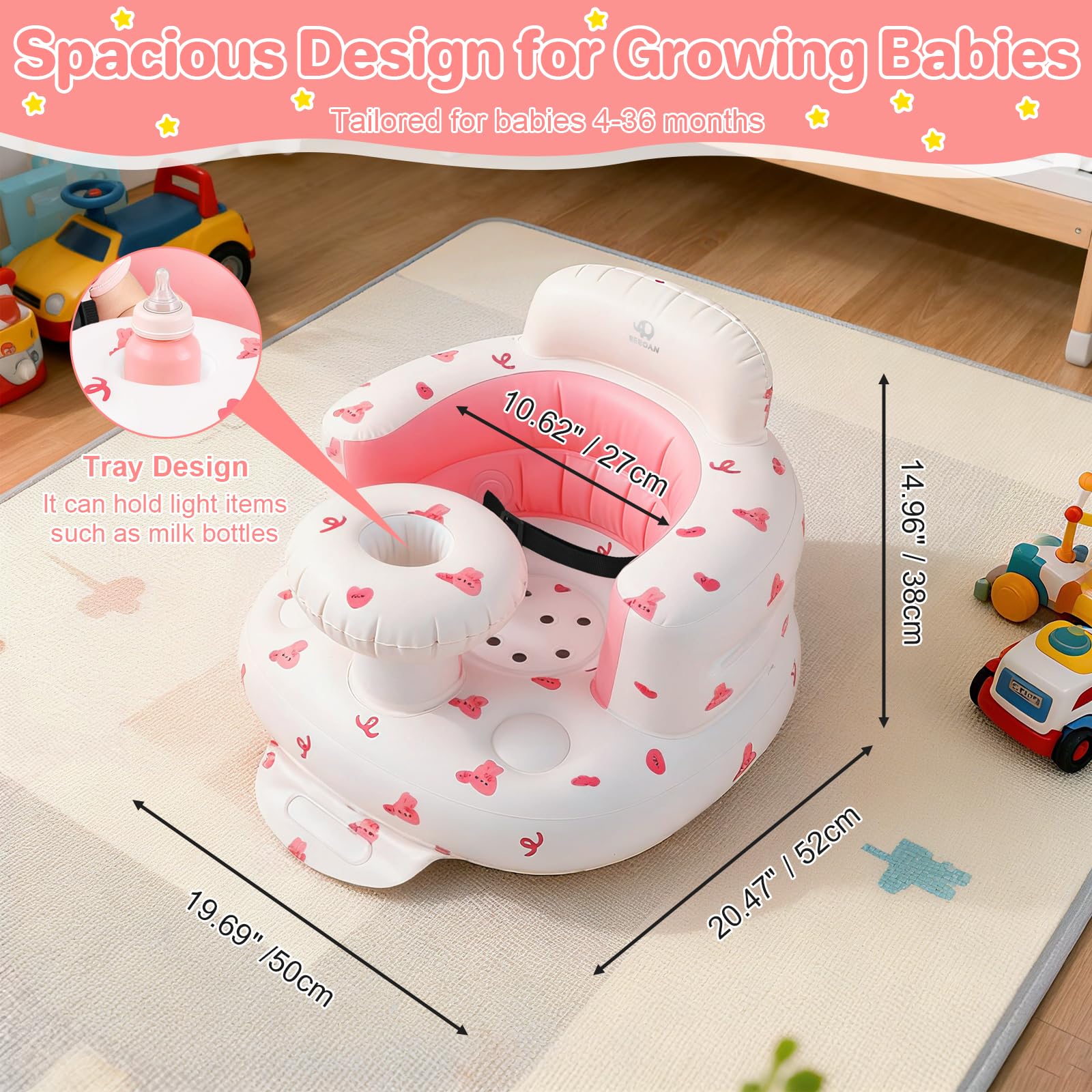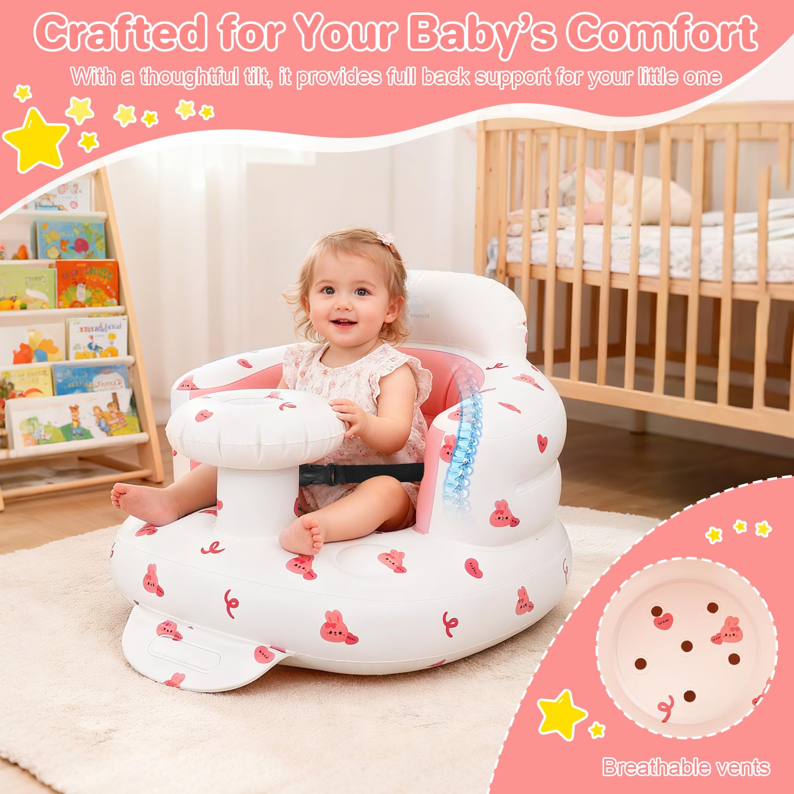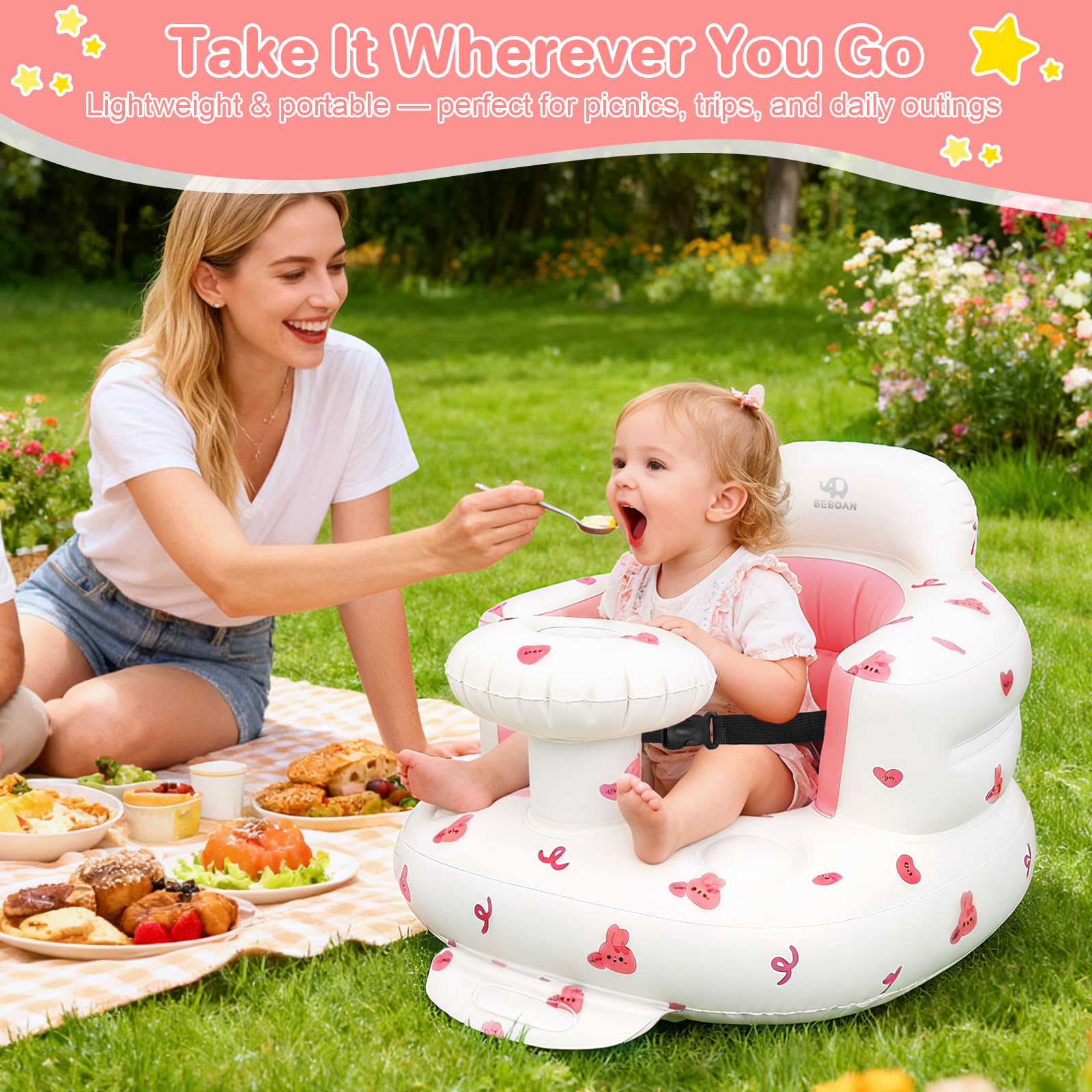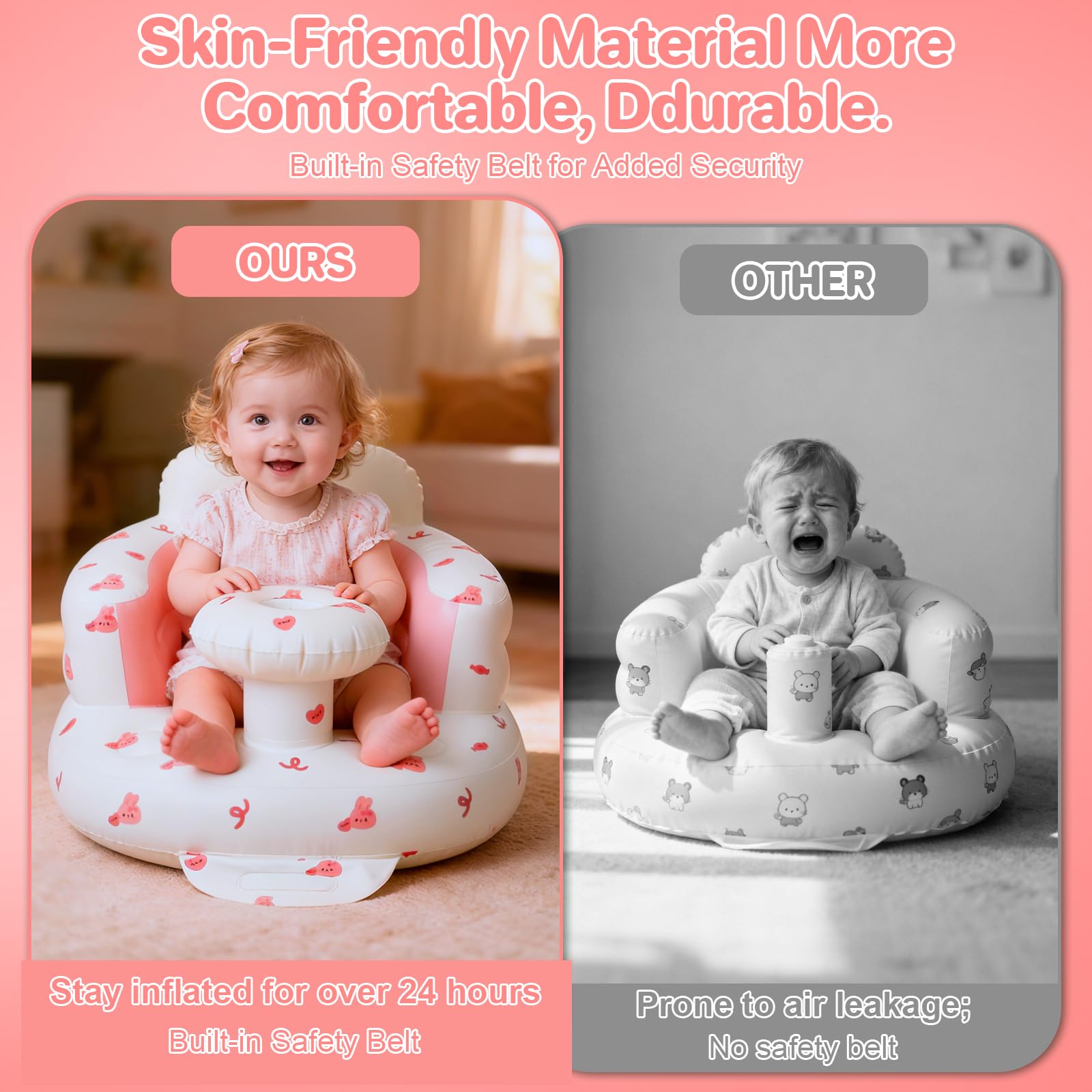 【Safety】: This inflatable baby chair is equipped with a special safety belt to fix the baby's body and ensure its safety and stability during use. Made of high-quality environmentally friendly PVC material, it is soft and skin-friendly to protect the baby's delicate skin.