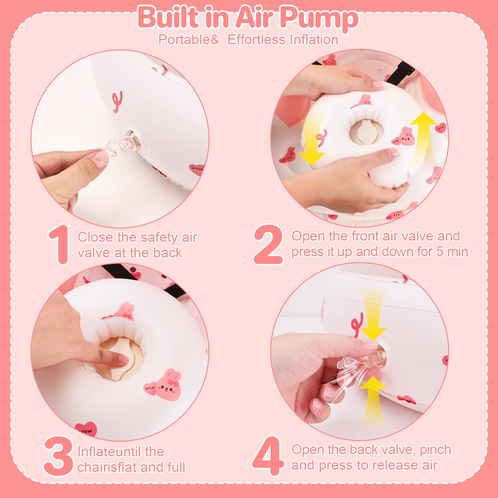 【Easy to Use】: Our inflatable baby seat comes with a built-in air pump. It can be inflated by hand for immediate use, or deflated quickly for easy storage. Suitable for travel and camping