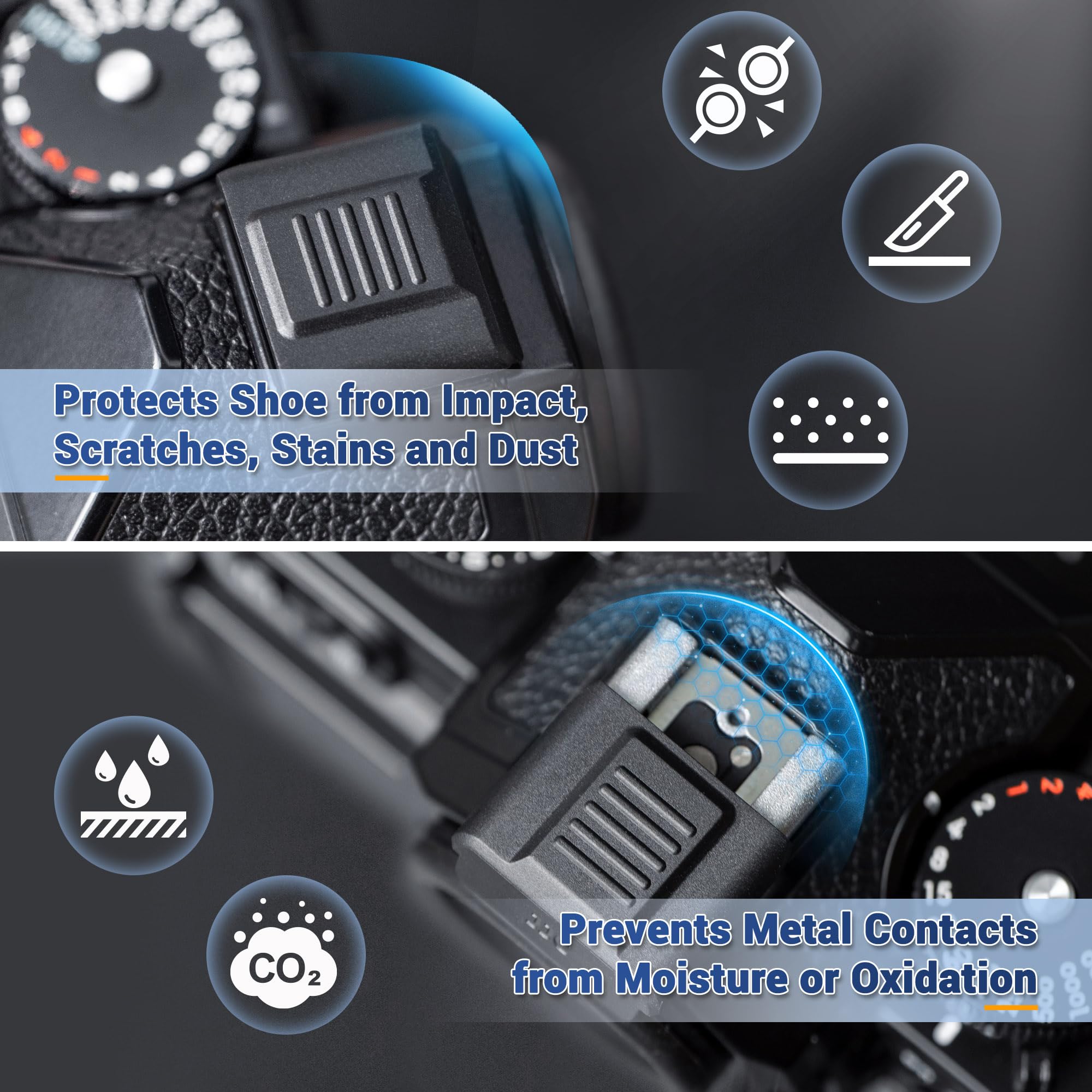 This upgraded shoe cap features a full coverage design that further protect the metal edges on both sides of hot shoe, enhancing the protection experience.