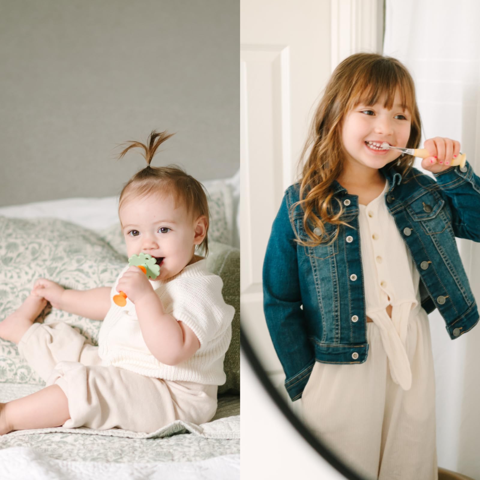 Tooth Brush Set for Growing Babies: Our baby toothbrush set includes a carrot teether for baby and a bunny toddler electric toothbrush. The set is designed to grow with your baby’s changing needs, making it an ideal choice for every stage of development.