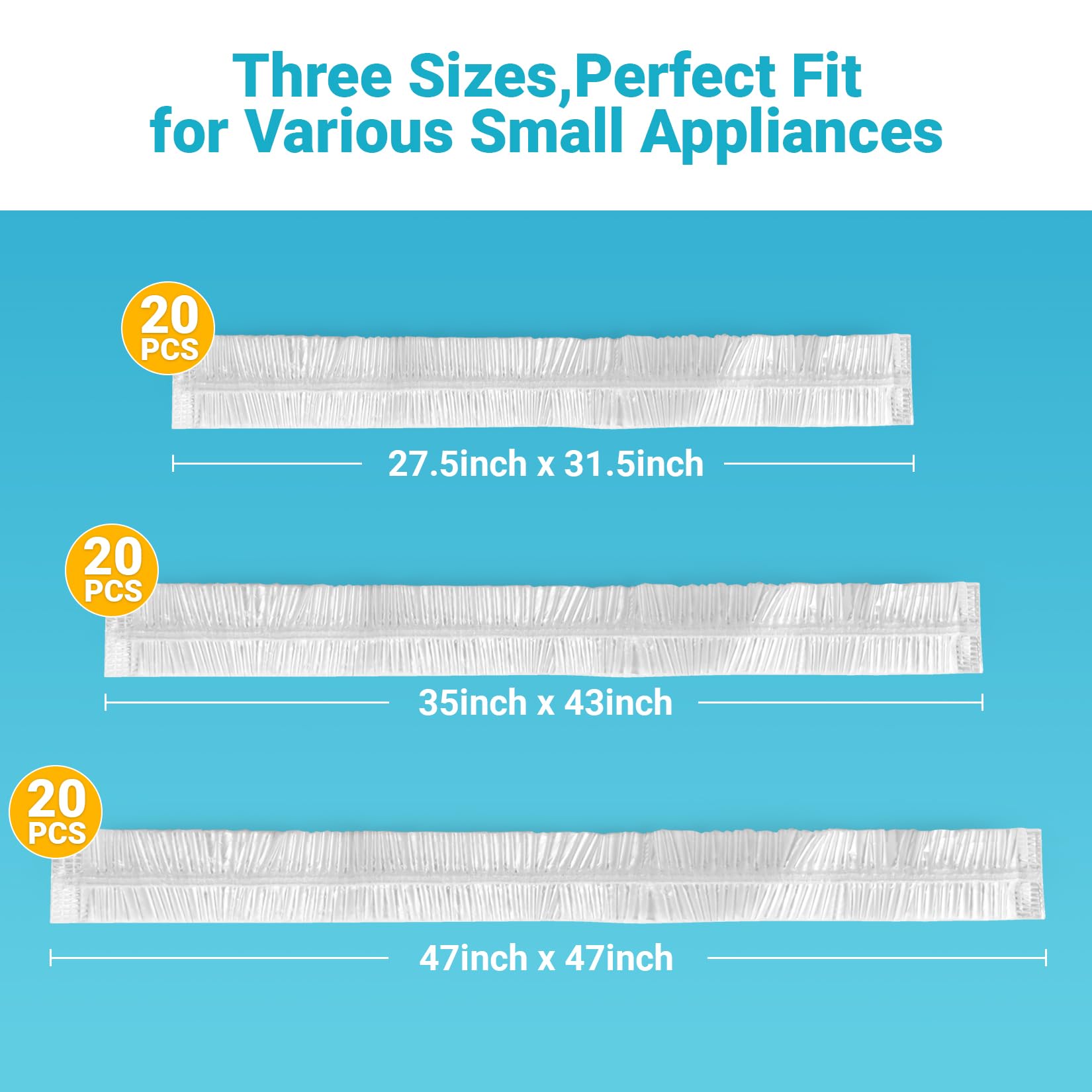 Three Sizes: You'll receive a set of 60 plastic appliance covers in three sizes. These kitchen small appliance covers are designed to fit a wide range of small kitchen appliances. Whether it's a oven or a rice cooker, our appliance covers can be adjusted by combination if needed