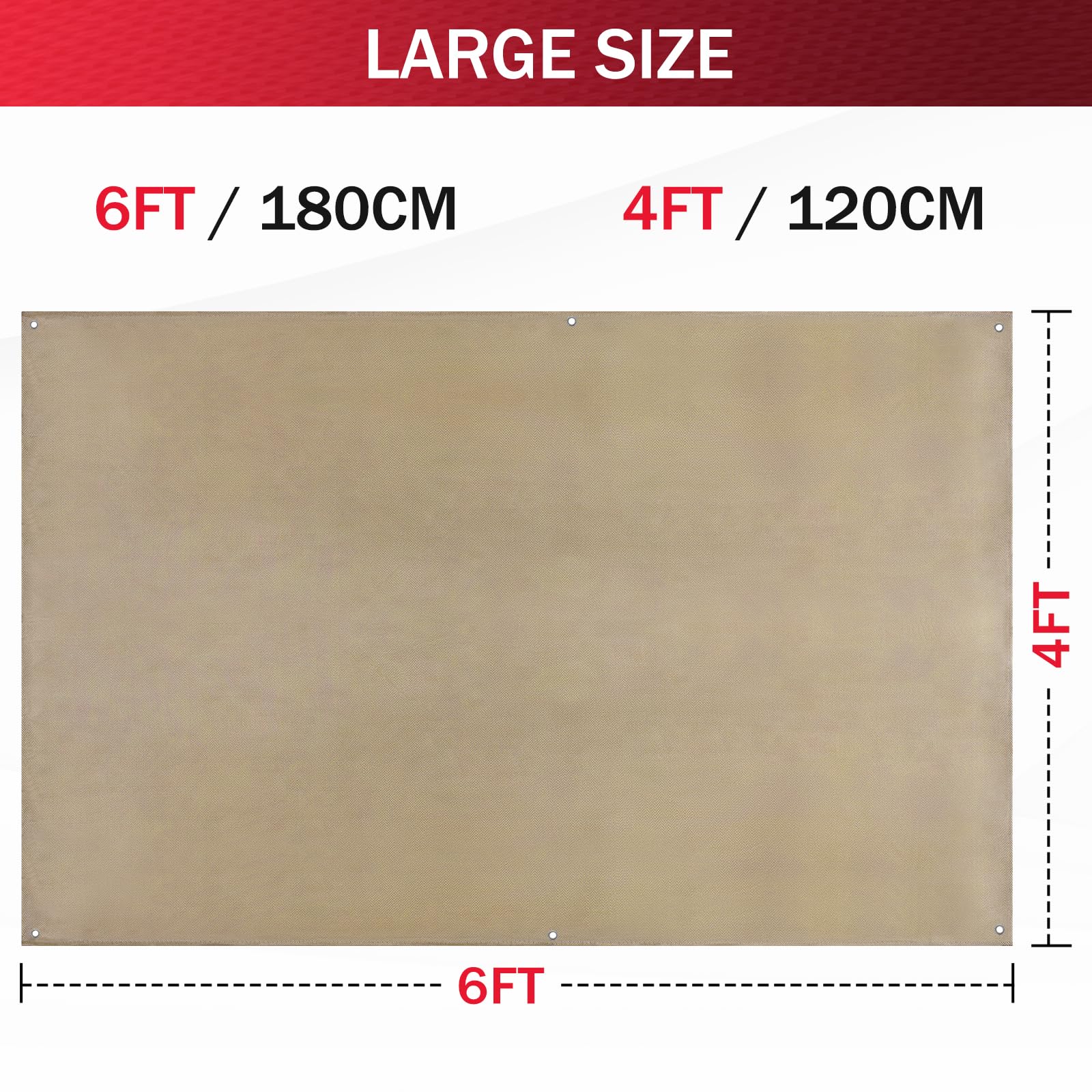 Heavy Duty Welding Blanket : 30 x 30 per square inch tightly weave pattern ensures tear-resistant and maximum durability for long term repeated use. Standard Size : 4x6 ft (120x180 cm) - 1 Pack, thickness: 0.31” (8mm).