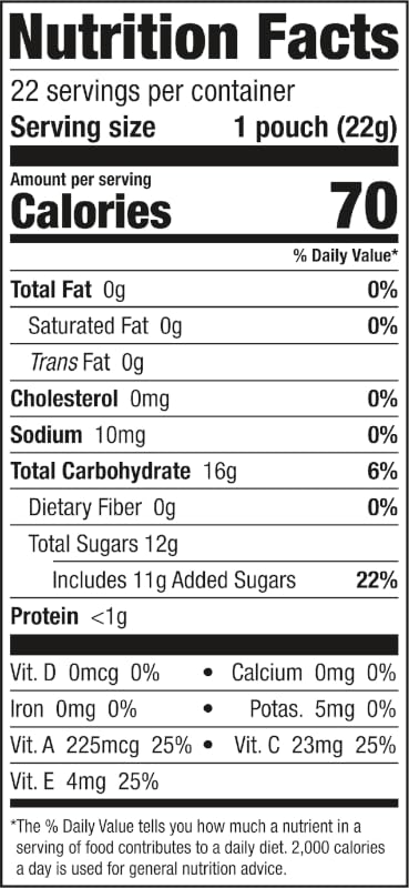PERFECT FOR SHARING: With 22, 0.8 ounce pouches in each pack, these fruit-flavored snacks are ideal for sharing with family and friends.