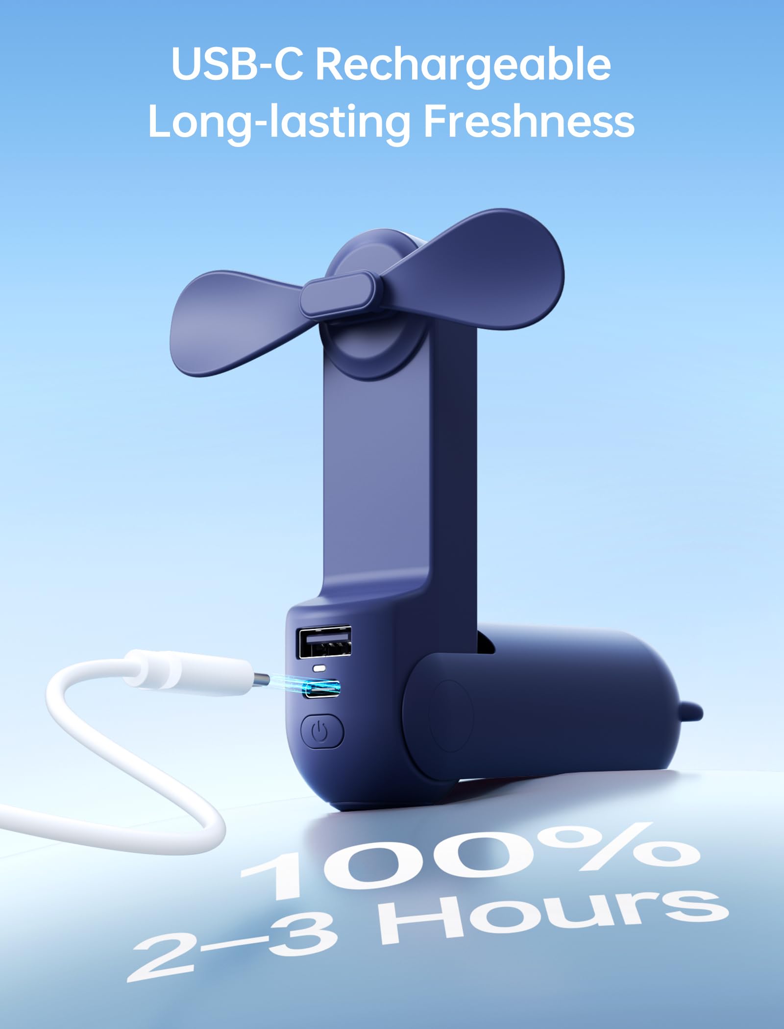 12-19 Hours Cooling Time: With up to 19 hours of cooling time on a single charge, this mini handheld fan ensures you stay refreshed during travel, concerts, and outdoor adventures; Conveniently rechargeable via USB