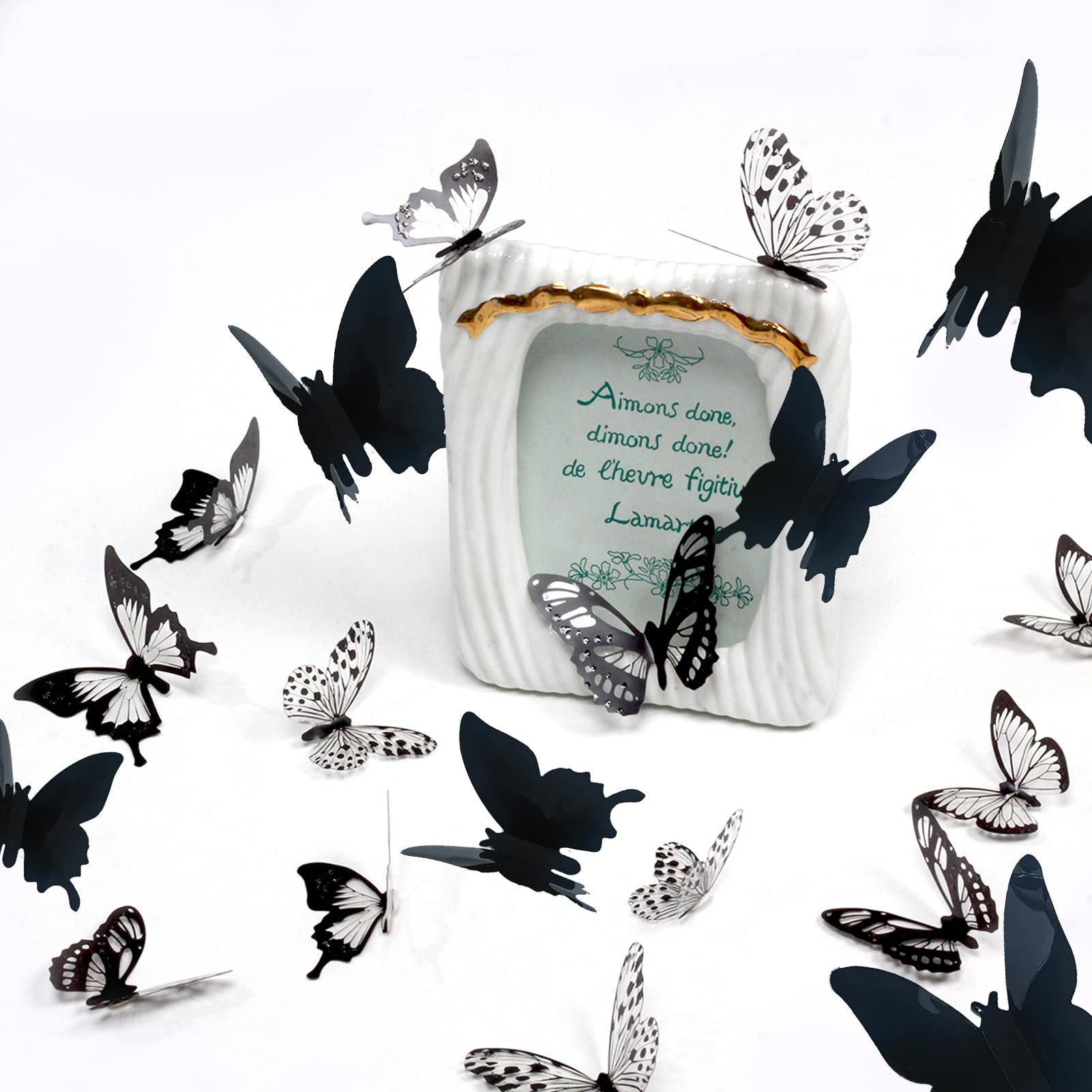 DECORATE MUCH OCCASIONS: Cute black butterfly art can be widely used in various settings, such as home, school, office or commercial space, jungle or spring theme party decor supplies. Bathroom, kid classroom, workroom, garden, girl dorm wall art decoration. Christening, festival celebration, Christmas, birthday, wedding, baby shower, paper flower, butterfly museum embellishment, background, dessert table decor, cake topper or fridge sticker, create a unique and personalized atmosphere