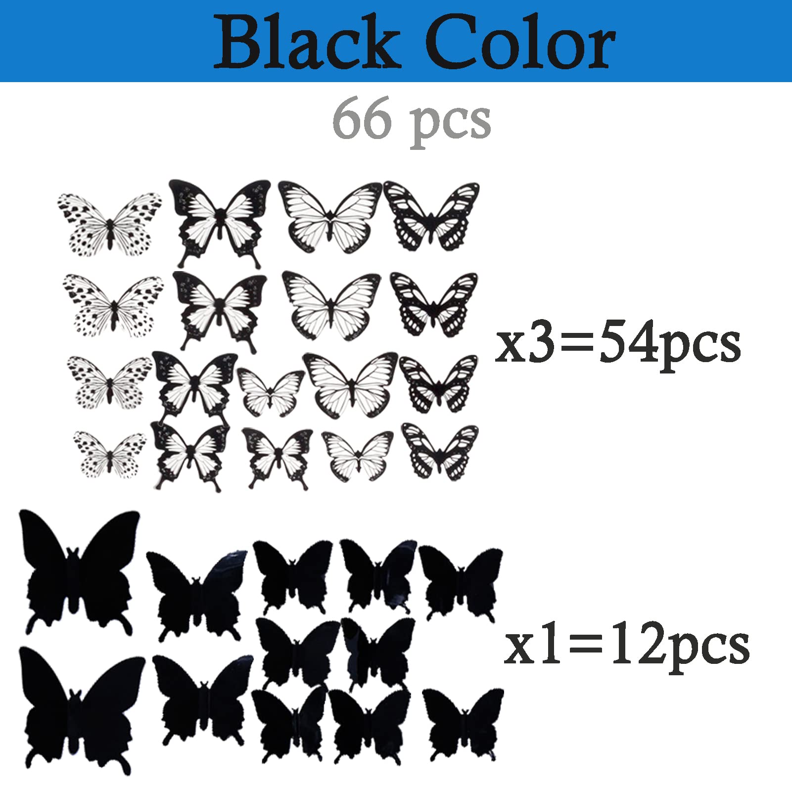 BLACK BUTTERFLY WALL DECALS: Package include 66pcs 3D butterflies wall sticker, different pattern style, 5 size(1.8", 2.1", 2.5", 3.1", 4.3"). Butterfly home decal decoration 8-12 year old girls bedroom aesthetic, 12-16 teenager girl dormitory. Whether you're decorating baby's nursery, teenager's bedroom or adult's living room, wall decor art craft can DIY any shape you like, black butterfly wall decor will add a touch of whimsy, beauty and sophistication to any space