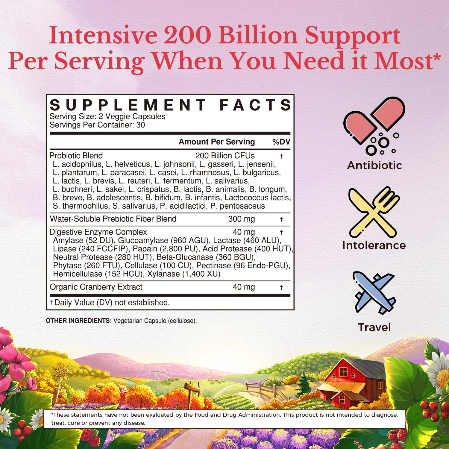 Pro + Pre + Digestive Enzymes + Organic Cranberry: Our 200 Billion Women’s Probiotics is enhanced with organic cranberry extract, plant-based digestive enzymes, and water-soluble prebiotics fiber to help support the gut, immune and vaginal health.* All the ingredients work synergistically to maximize their strength and maintain natural gastrointestinal & urinary tract balance.* Ultra Strength 200 Billion Women’s Probiotic is here for the maximum reinforcement of gut health and vaginal cleanse.*