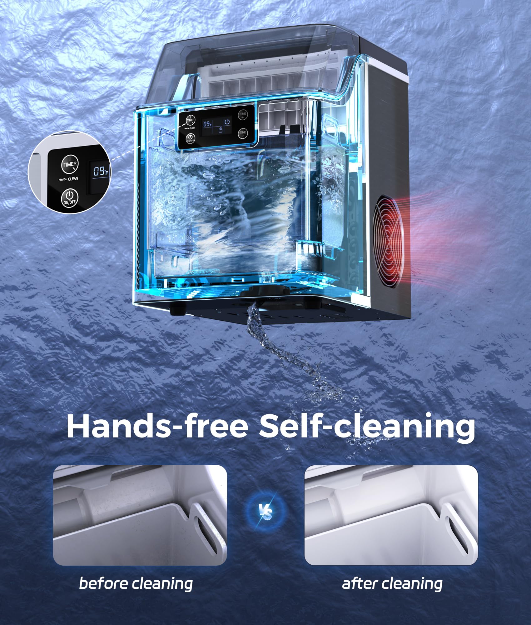 High-Speed Ice, Ready for Demand: Produces a full batch in just minutes with powerful daily output to keep up with busy households, gatherings, and everyday cold drink needs