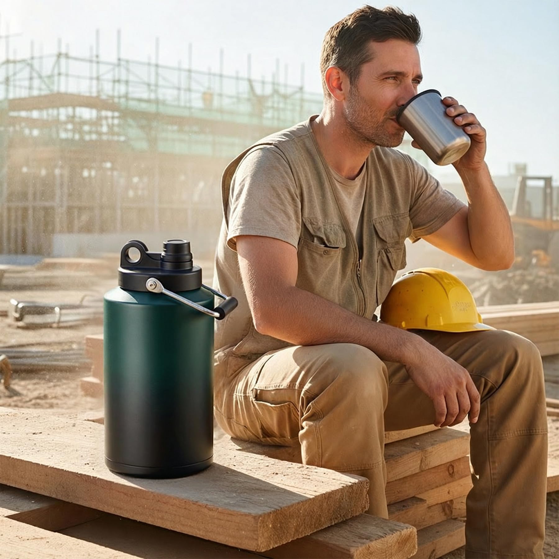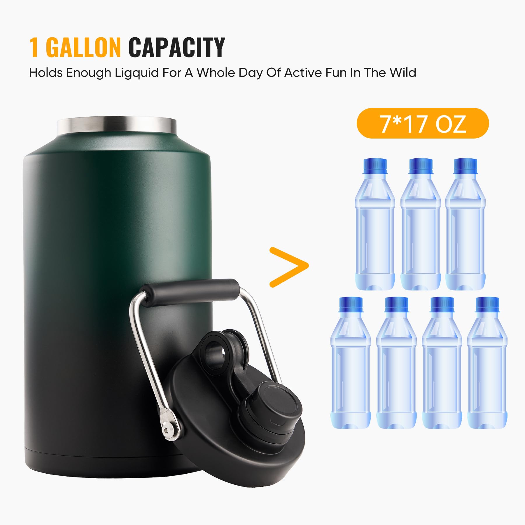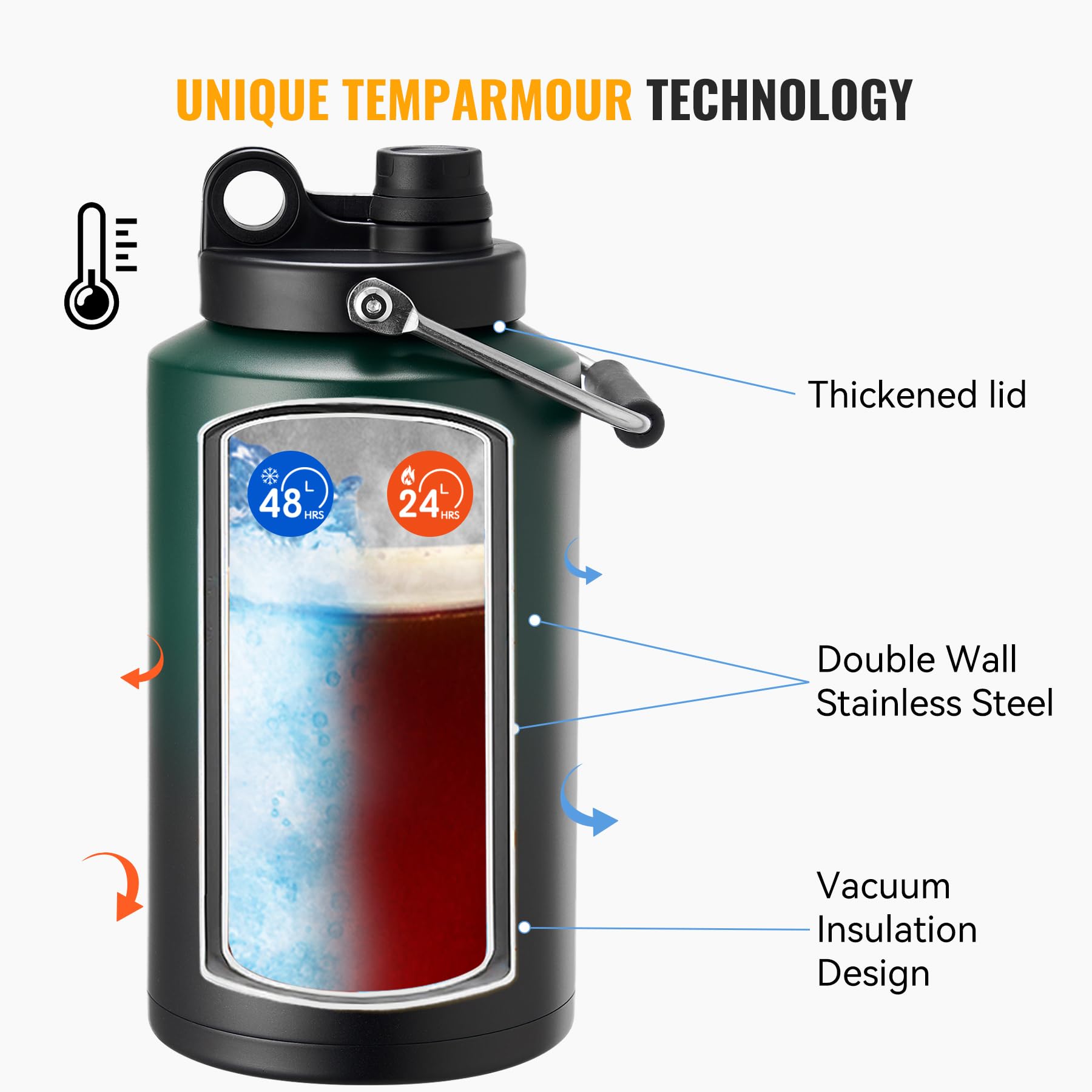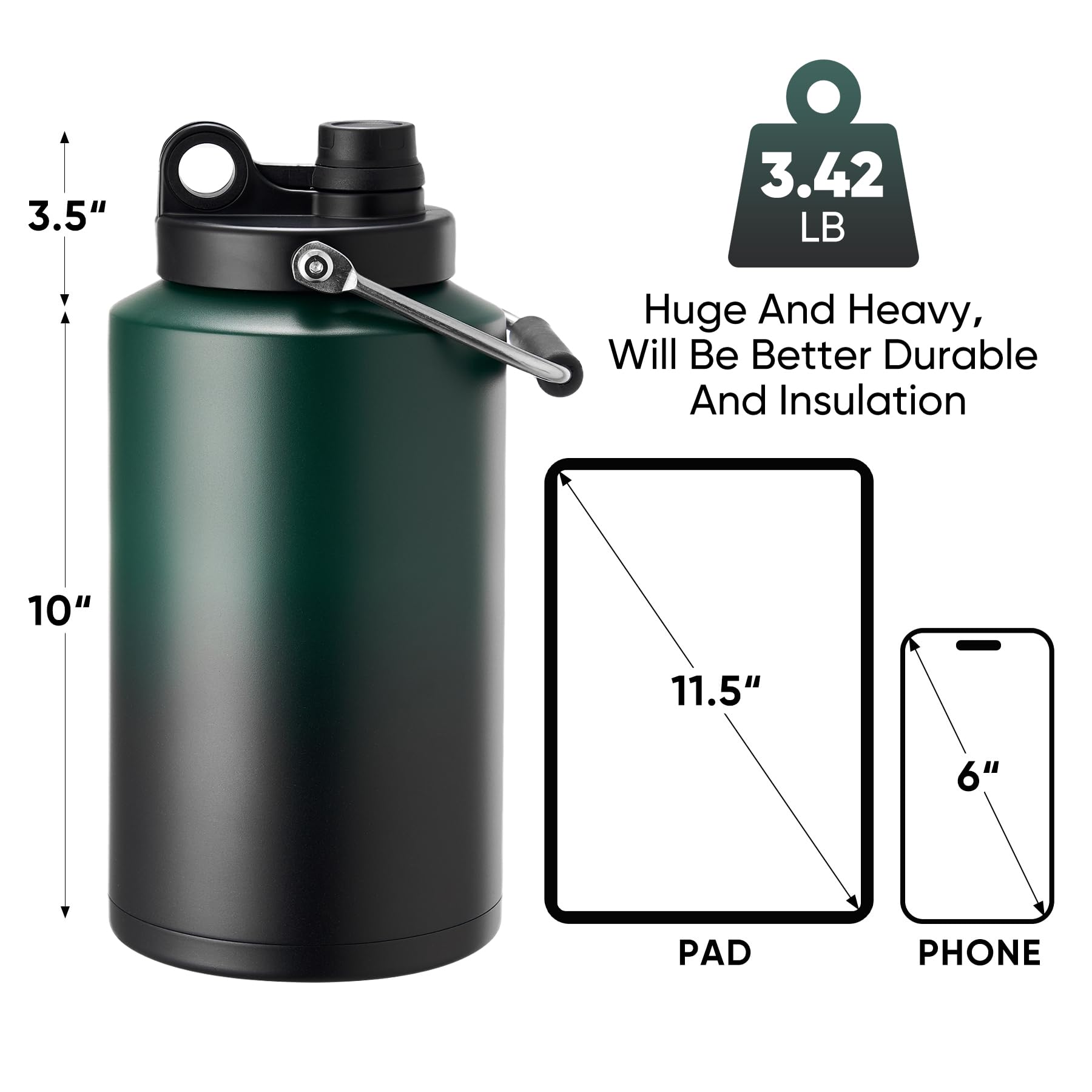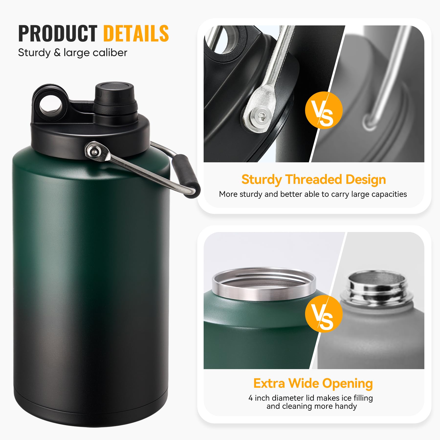 💧VACUUM INSULATED: Double layer vacuum insulated kettle, keeps the liquids icy for up to 48 hours or piping hot for up to 24 hours.This gallon water bottle is made of Powder-coat sweat-free technology, bottle grabbing becomes easy in time after strenuous exercise.