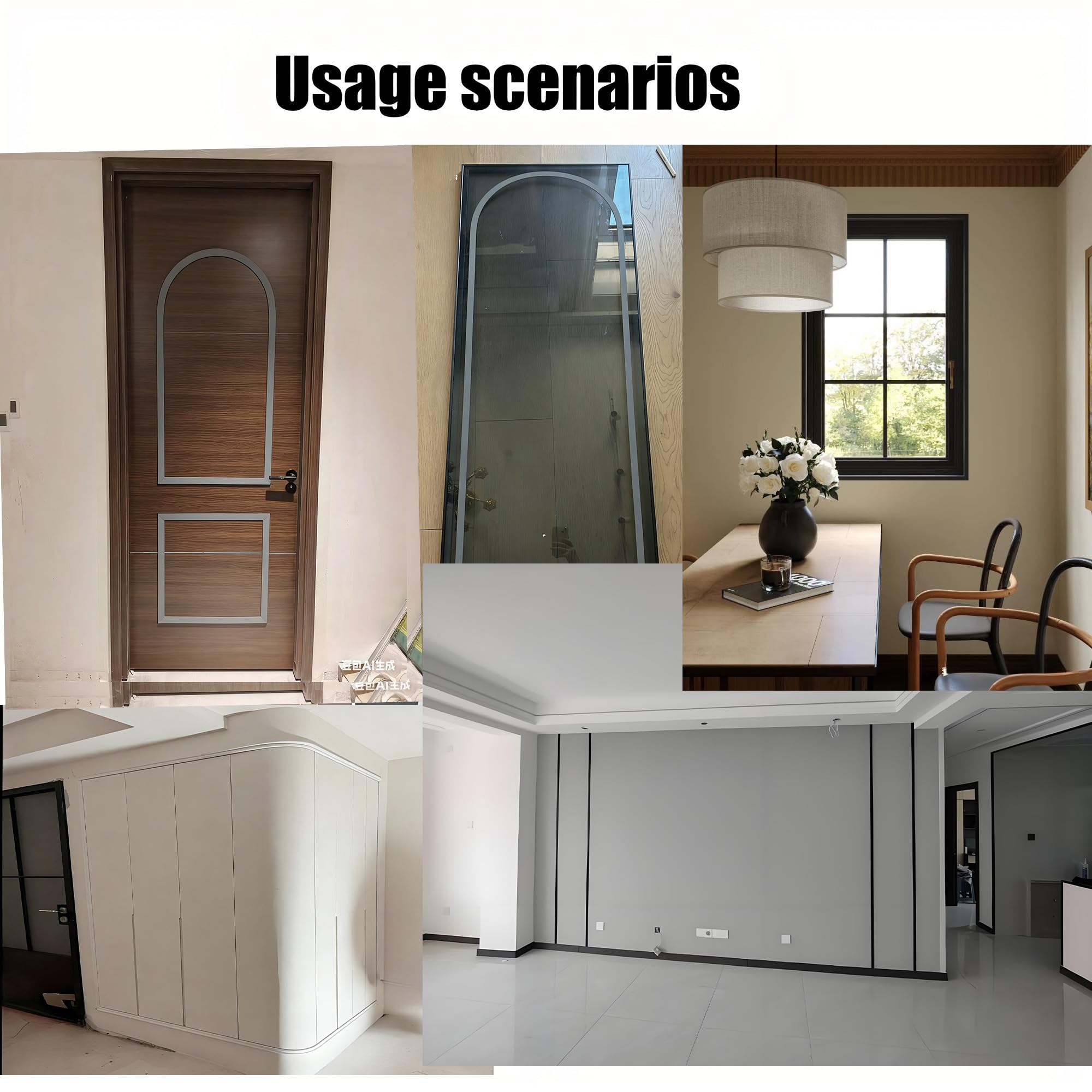 Versatile Usage:Our chair rail moulding for walls Suitable for a wide range of applications including tile, plastic, marble, metal, glass, wood, and smooth walls. Perfect for enhancing bathrooms, bedrooms, living rooms, kitchens, and even as decorative accents for baseboards, ceilings, borders, cabinets, and mirrors.