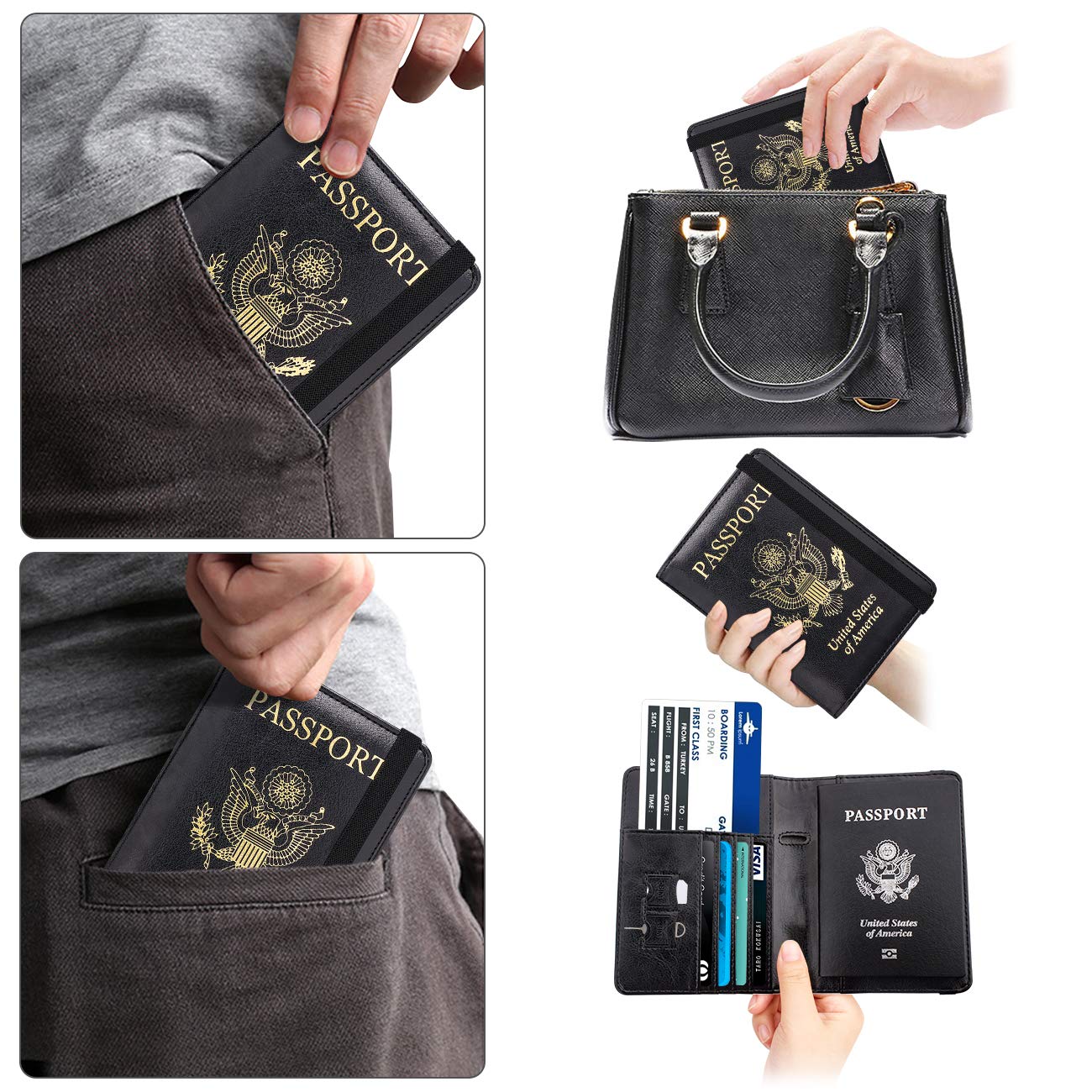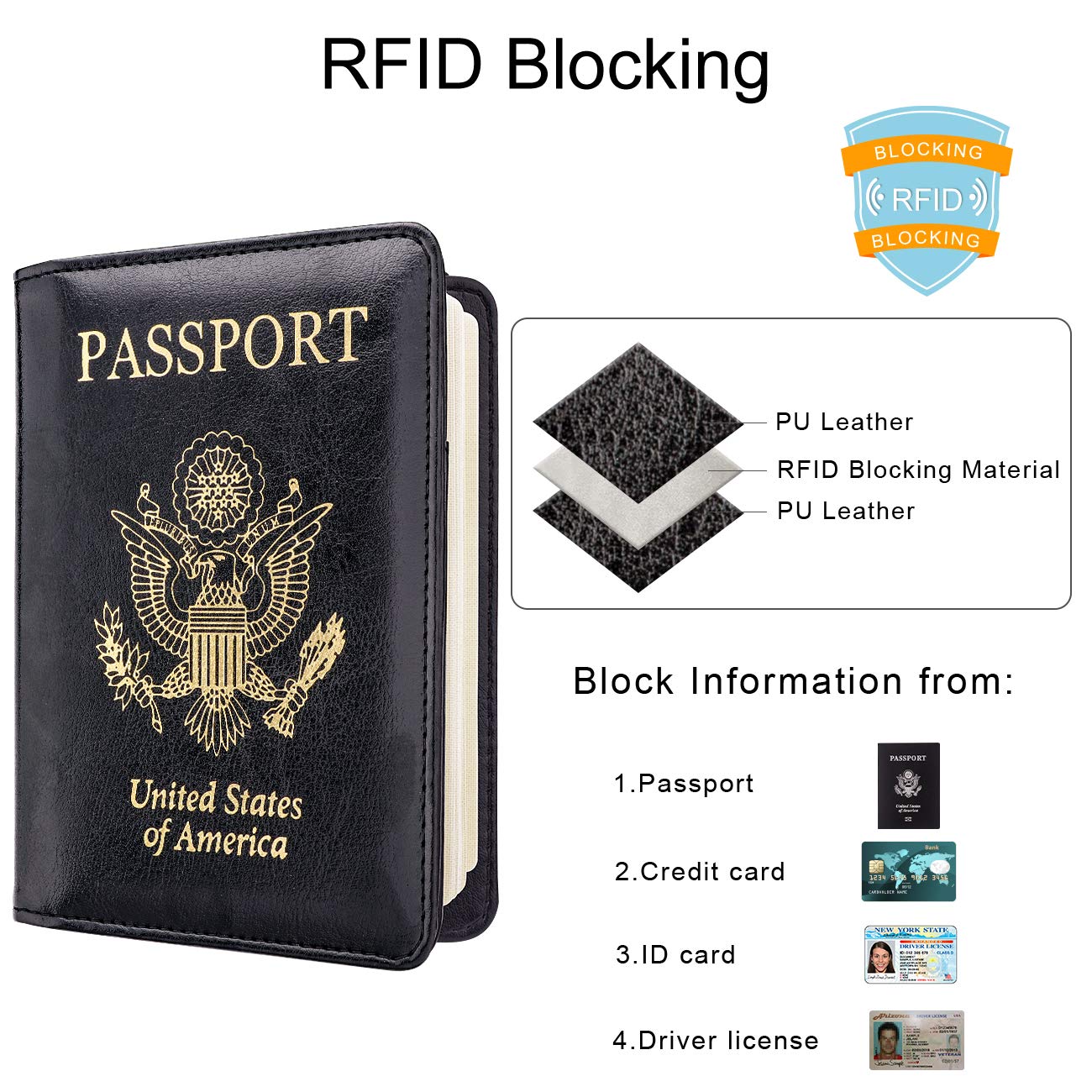 Security Passport Book Protector: With RFID blocking shield material inside, this RFID Blocking passport wallet helps prevent personal account information disclosure. Comes with an elastic strap which can secure items inside, rfid wallet will not open in your bag or luggage