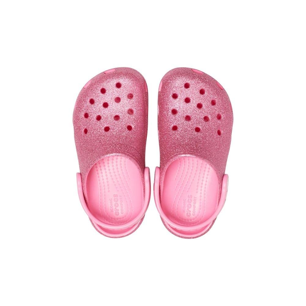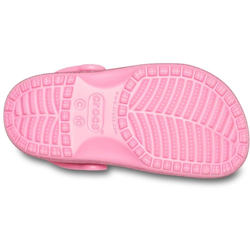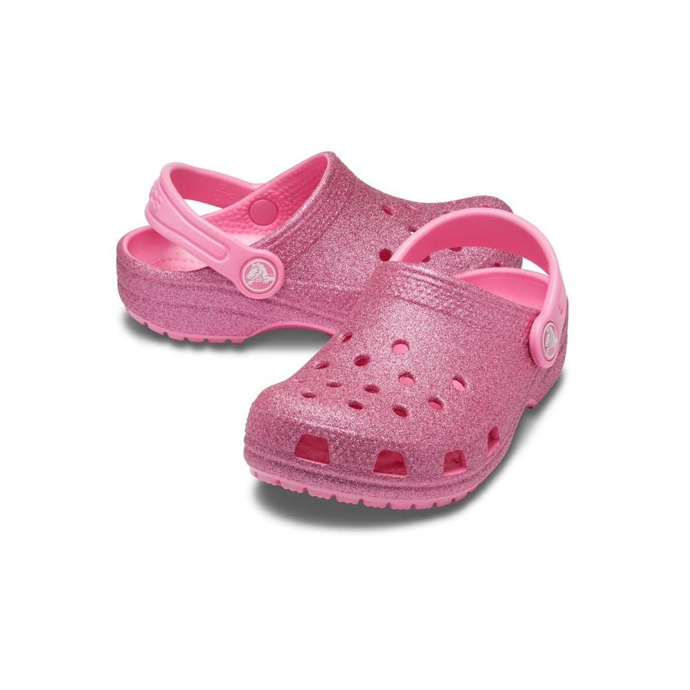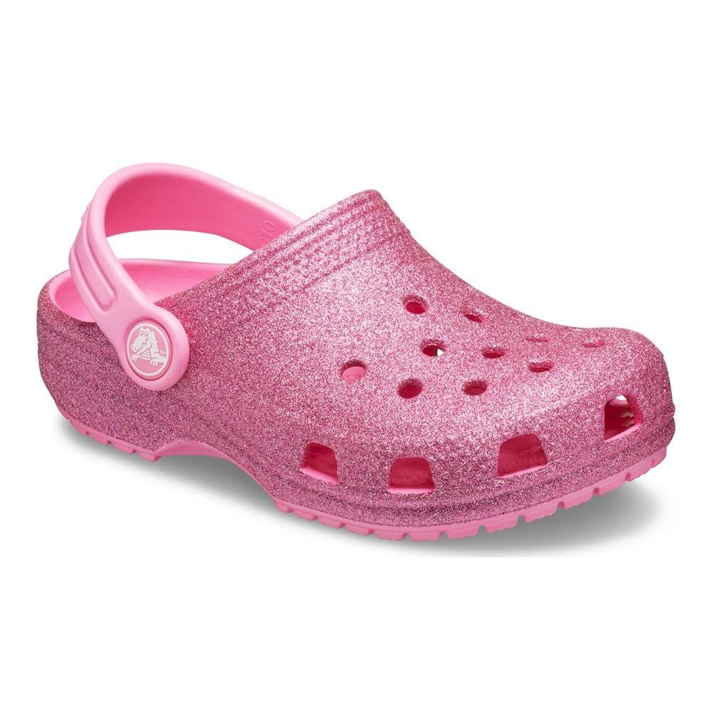 SPARKLING STYLE: The Croc Kids Classic glitter clog is a fashionable choice for your little one, featuring an allover glitter detail that adds a touch of sparkle to their outfit. The glitter design not only looks chic but also adds a playful and eye-catching element to their look. Whether they're attending parties, family gatherings, or simply enjoying everyday adventures, these clogs ensure they stand out in style.