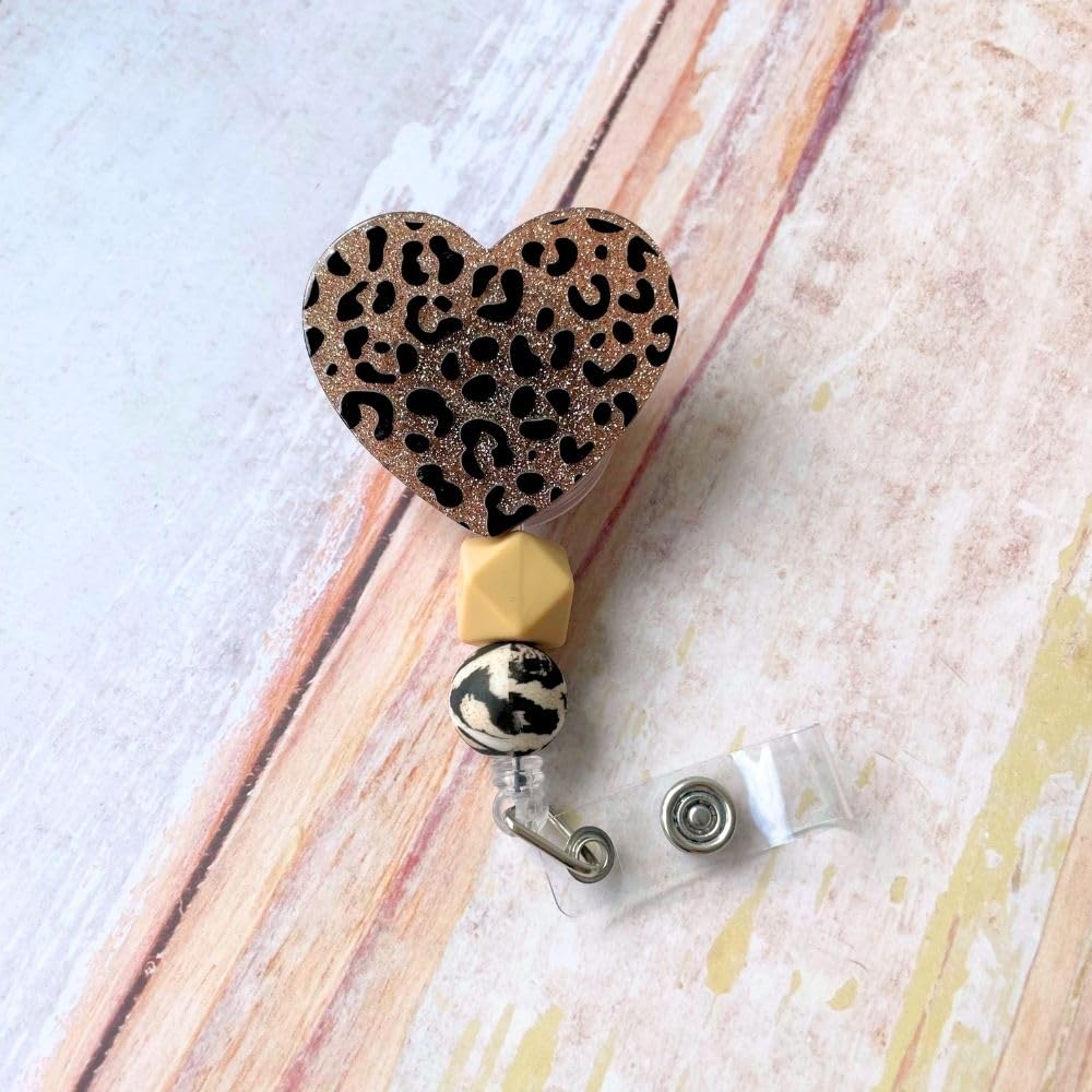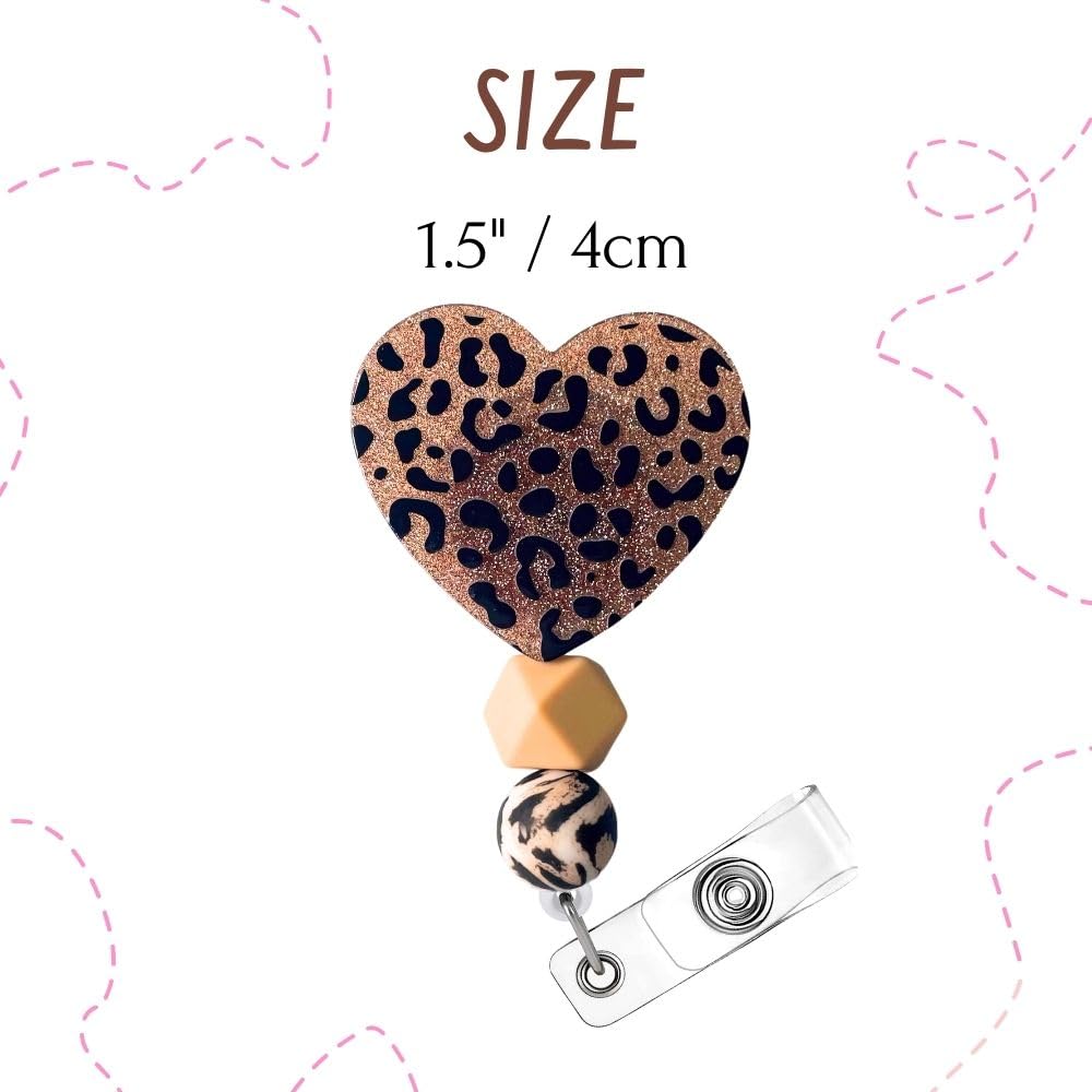 - **Chic Cheetah Heart Design**: The Cheetah Heart Badge Reel features a trendy heart shape beautifully decorated with a stylish cheetah print, combining fun and fashion to create an eye-catching accessory that stands out.
