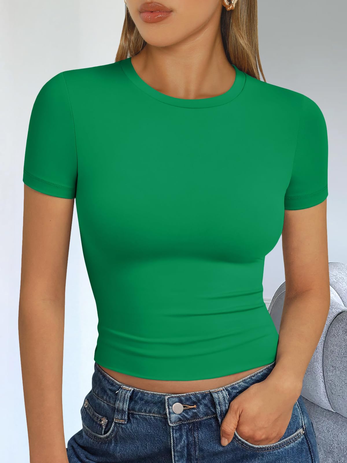 Design: Cropped and regular style,you can wear it regularly or fold it up like a crop top.cute,slim fitted,casual style,scoop neck,short sleeve