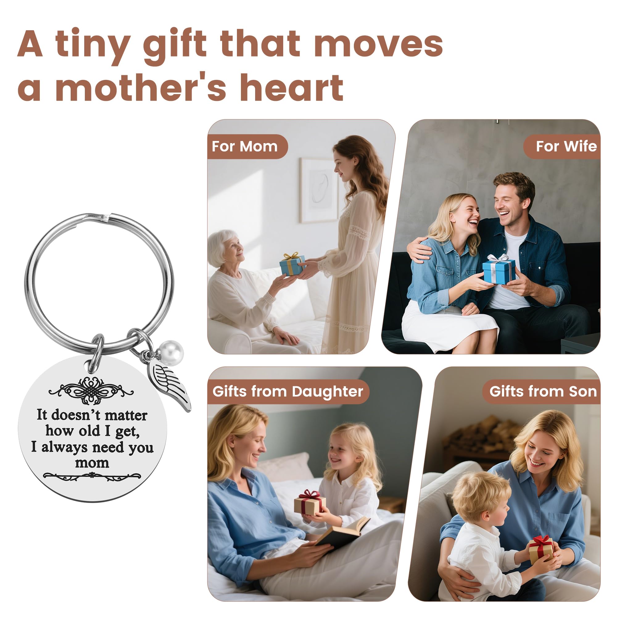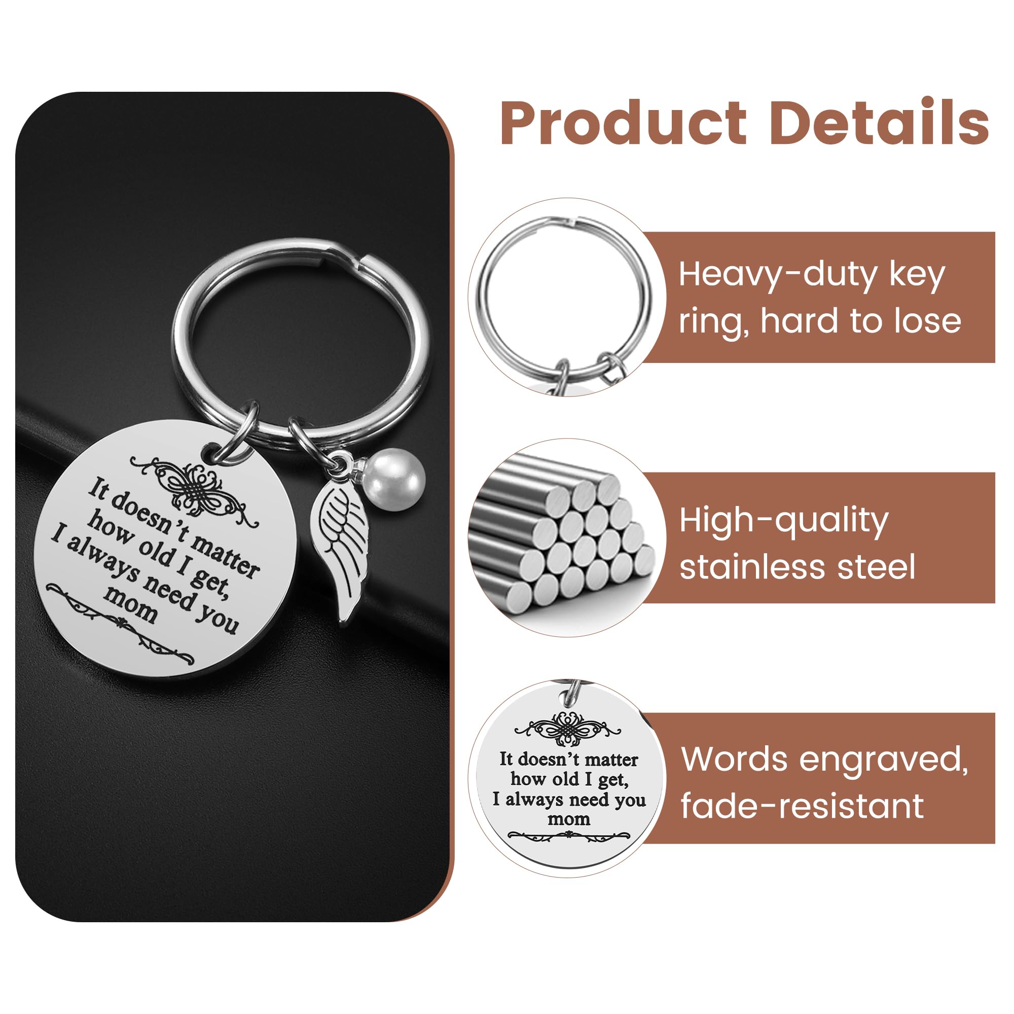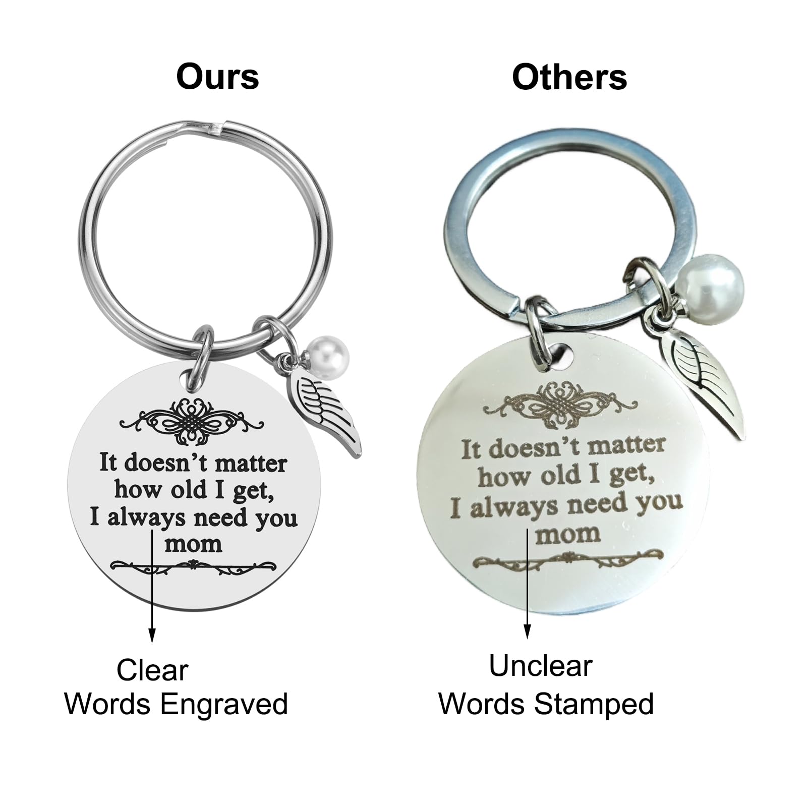 MOM KEYCHAIN FROM DAUGHTER SON: It doesn't matter how old I get, I always need you mom; Mom keychain from kids