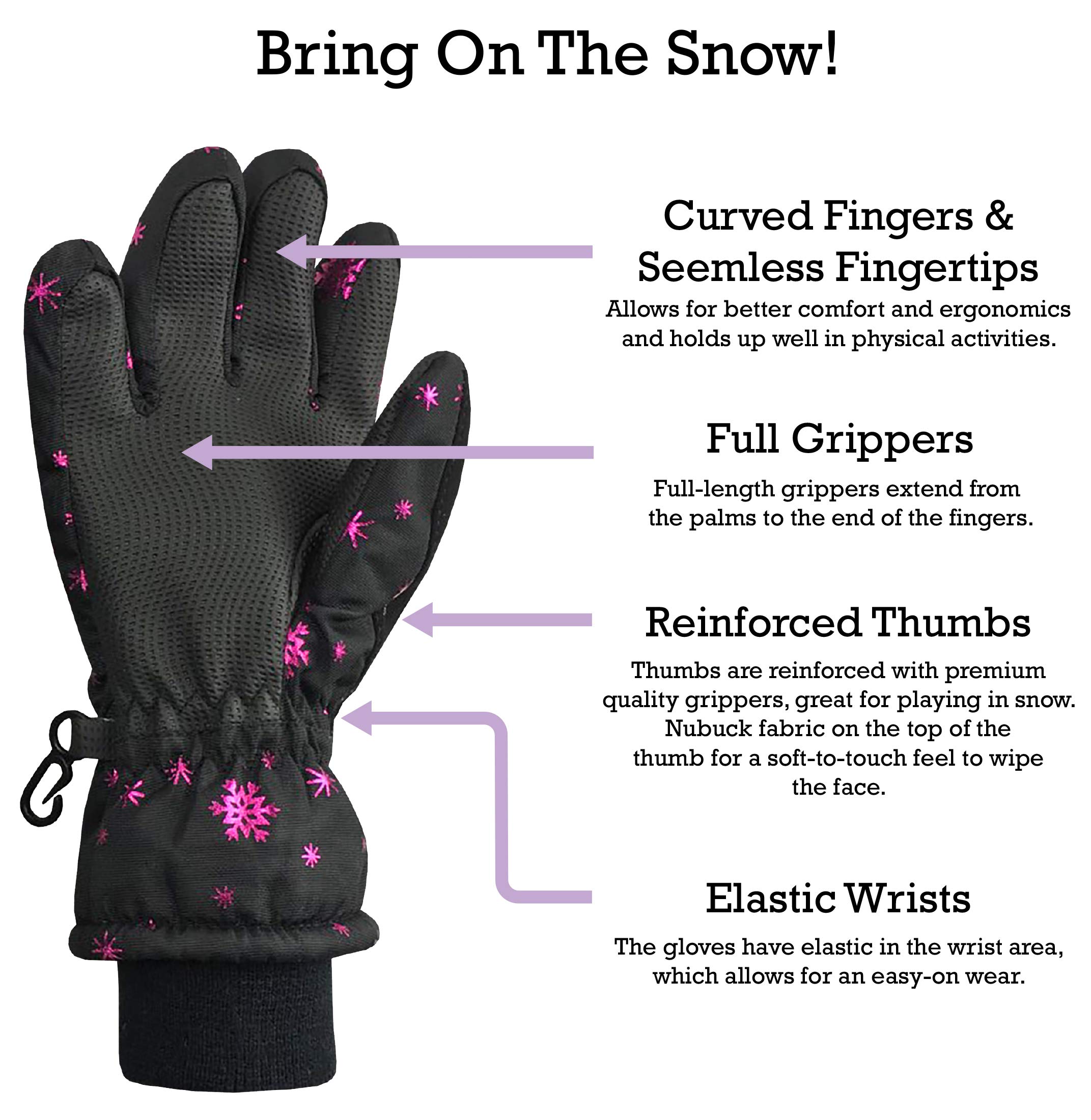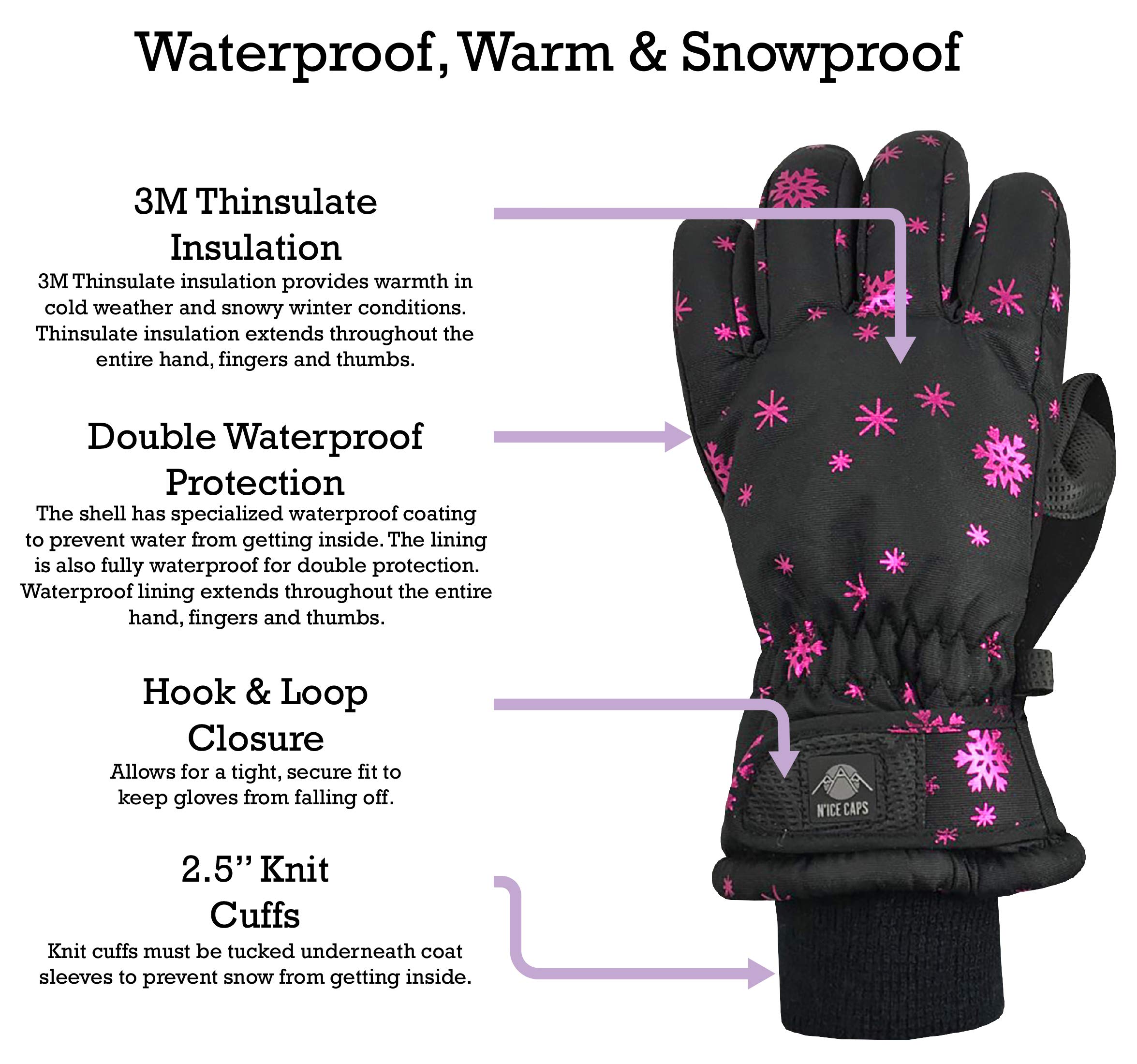 WATERPROOF, WARM AND SNOW-PROOF: The children's snow gloves are insulated with 3M Thinsulate for warmth in cold weather. The youth gloves are fully waterproof and keep hands dry in wet, snowy and icy conditions