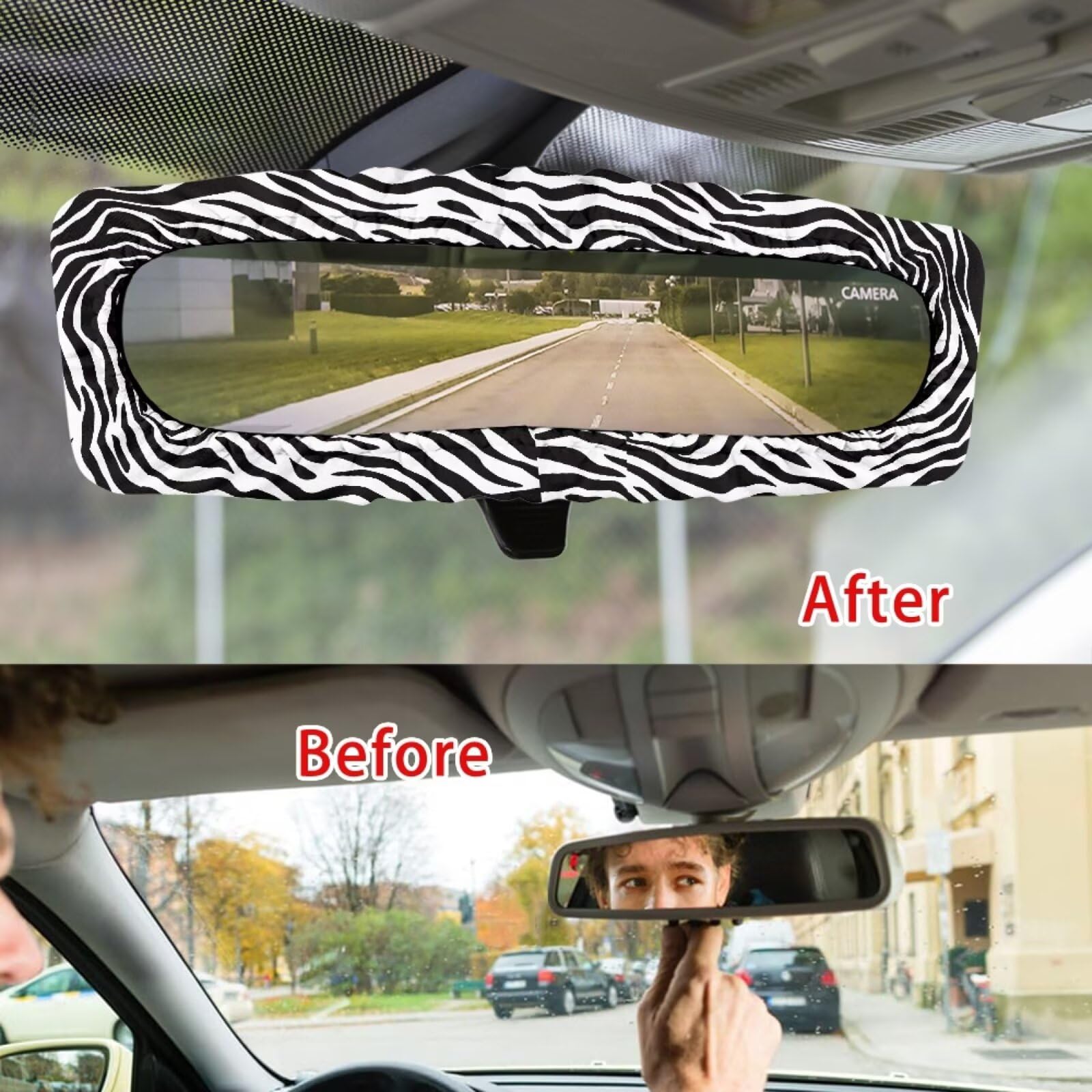 【Simple Installation】:no complicated installation steps, just put it on the rearview mirror to complete the installation. The elastic band design ensures that it will not loosen during long-term use, and the soft material will not wear out the mirror during installation and removal