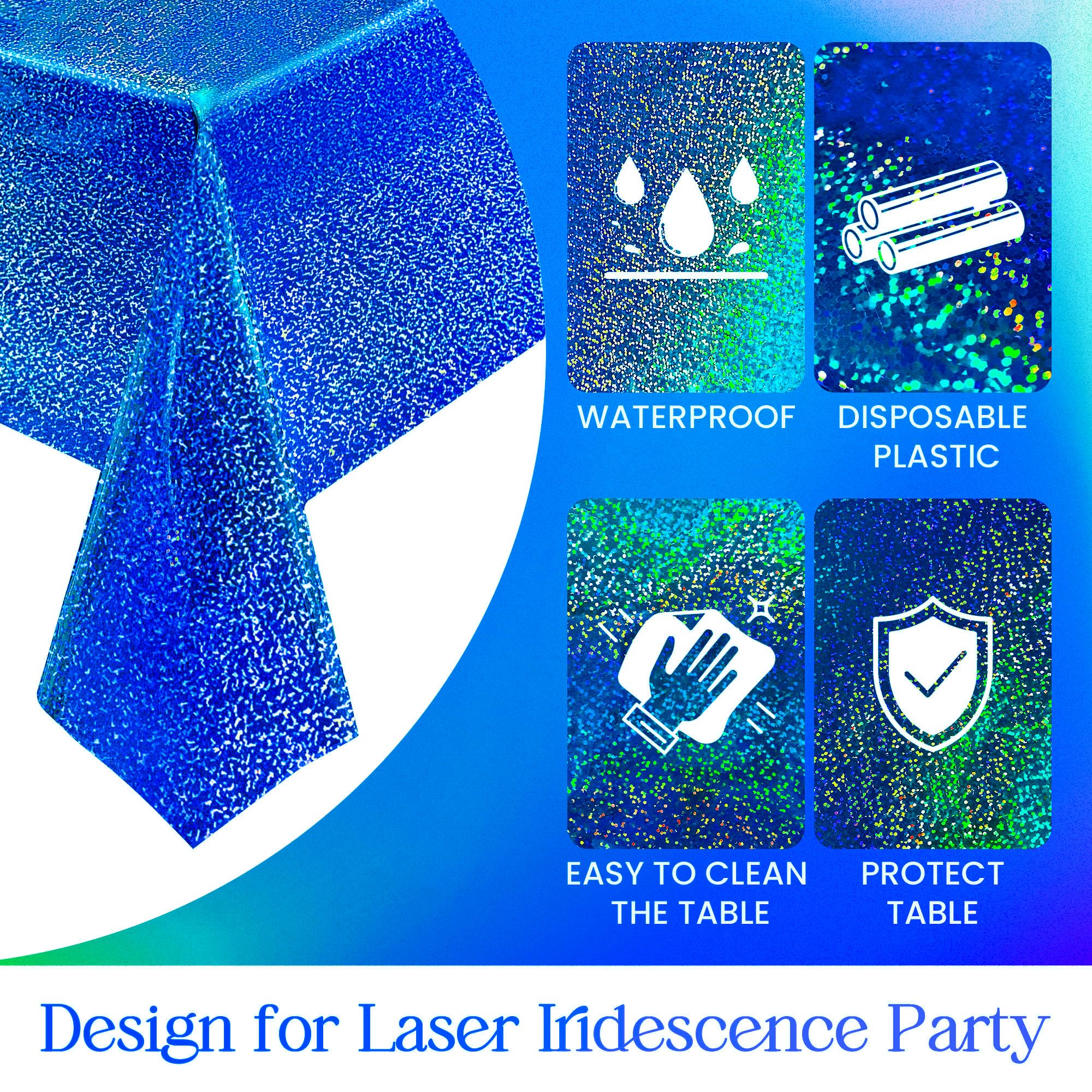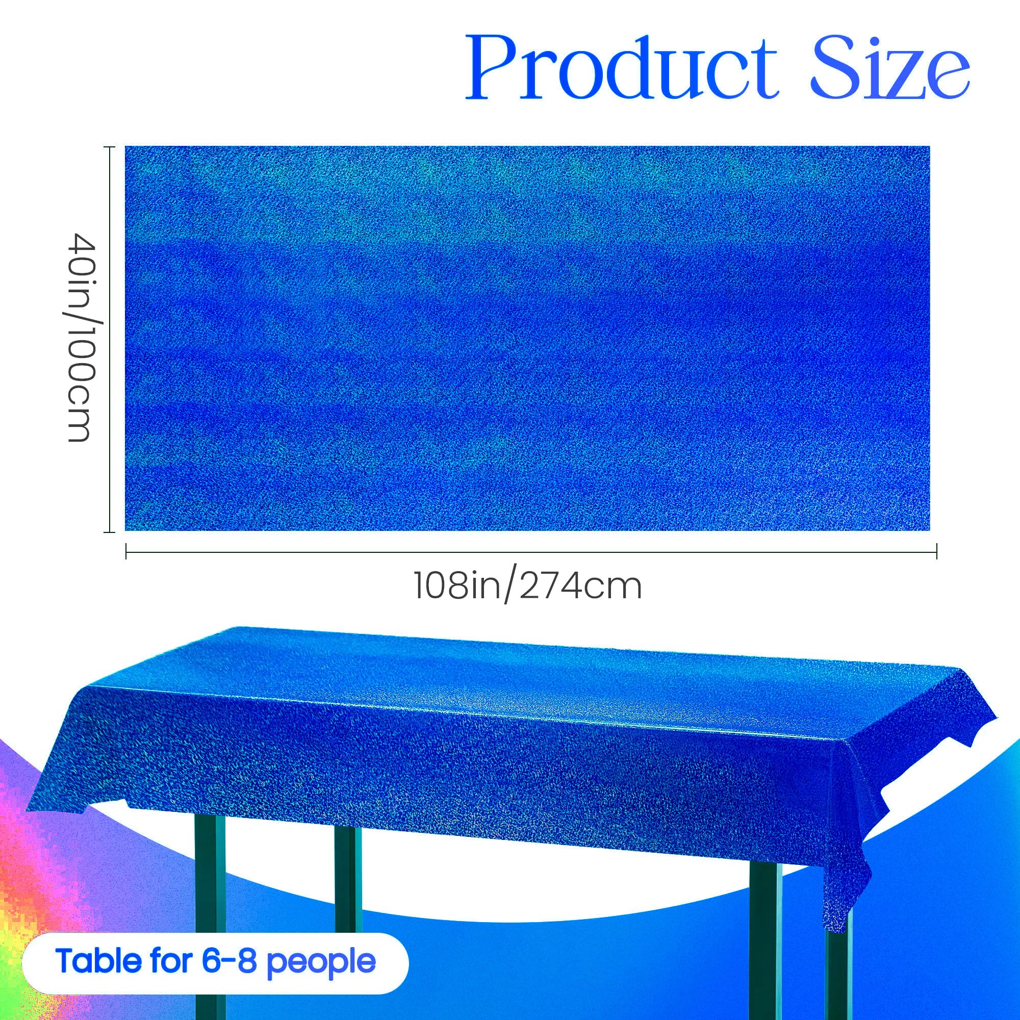 Unique & Gorgeous Reflection Effect: The tablecloth with bronzing technology is really shiny and sparkling. Holographic glitter tablecloths can reflect different light at different angles. And the shiny look goes both side of the tablecloth.The stronger the light, the briggter tablecloth reflect, which provides a cheerful and festival atmosphere for the situation.The creative design will effortlessly complement your party theme and impress all your guests. Ready to have a fantastic Party!