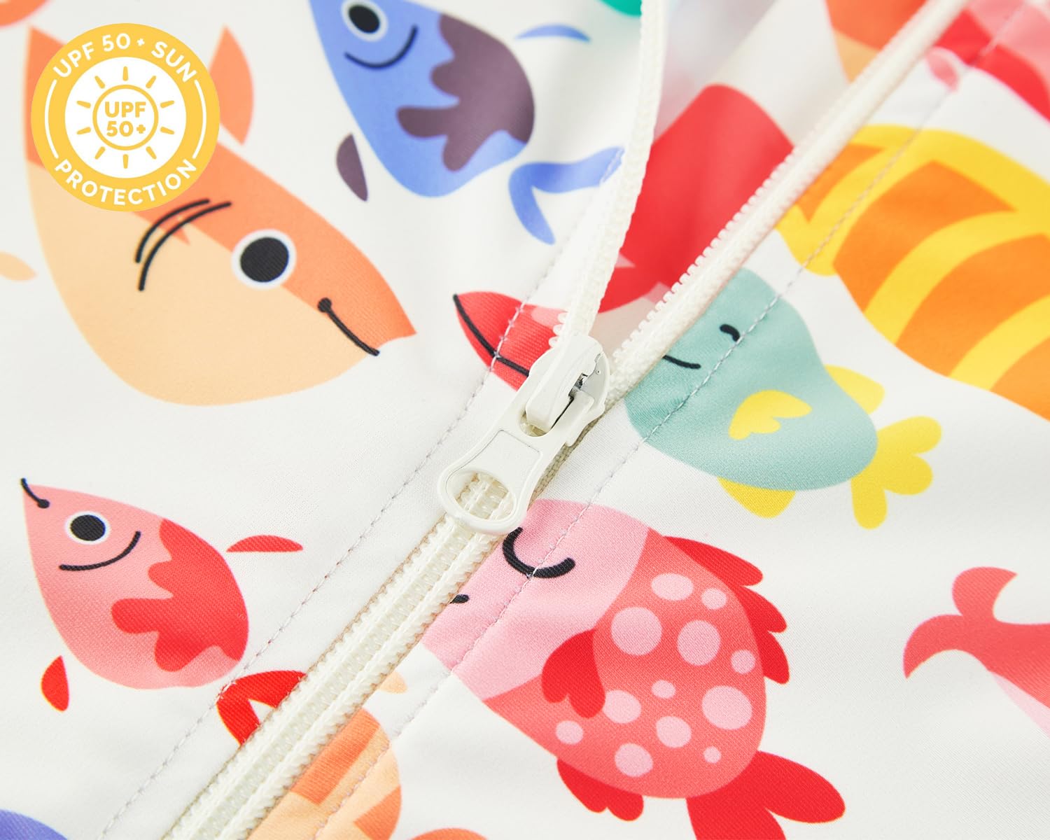 FULL FRONT ZIPPER: Our toddler swimsuit features a full front zipper for smooth dressing and undressing. This design makes diaper changes a breeze, ensuring quick and easy transitions, even when the outfit is wet. Diaper changes have never been easier