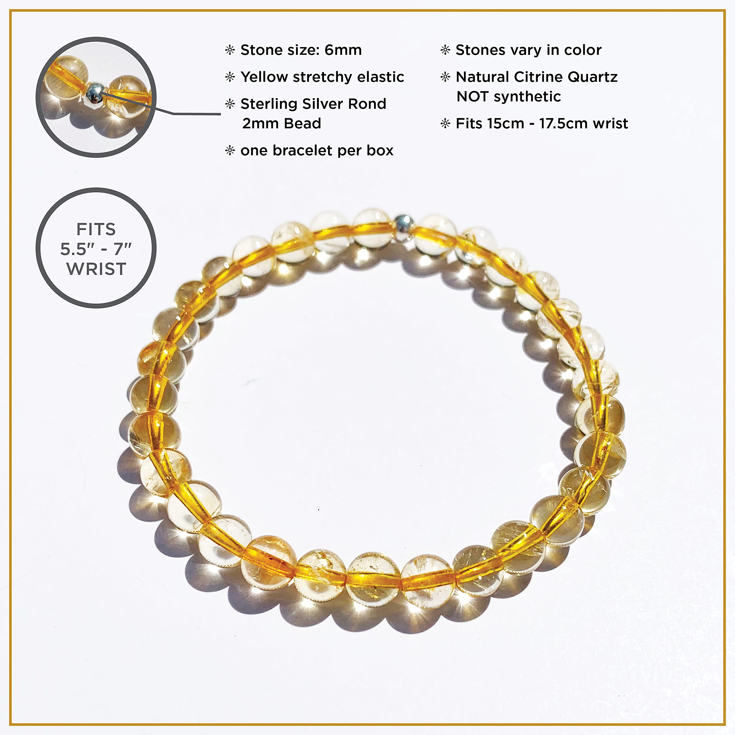 QUALITY MATERIALS: Handmade charming dainty transparent yellow citrine with a sterling silver bead are perfect for any occasion. The beads are 6mm in diameter and fits anyone who has 6.5-7 inches wide wrist. This crystal had no dyed, no color enhanced its it natural and may include natural inclusion.