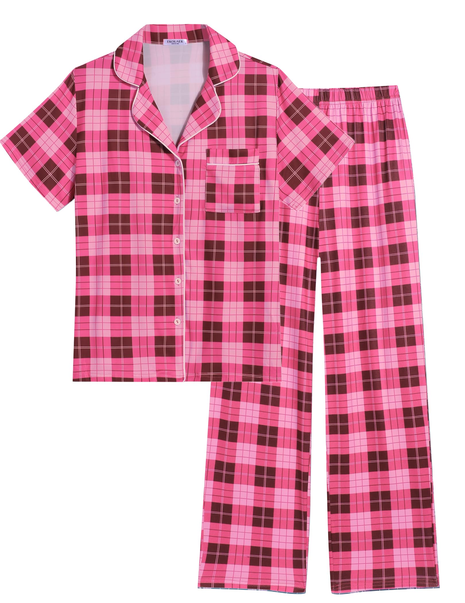 Multiple Options: 2 piece lounge set comes in solid colors, floral patterns, and classic checkered prints to choose from, meeting your dressing needs for various occasions such as birthday parties, lounging, sleeping, work, party pajamas, wedding pajamas, etc