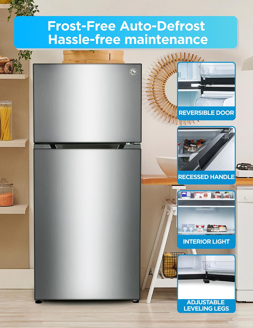 Generous 18 Cu. Ft. Capacity: Our full size refrigerator with freezer offers organized storage for fresh and frozen foods. Top freezer refrigerator fits perfectly in kitchens in homes and apartments