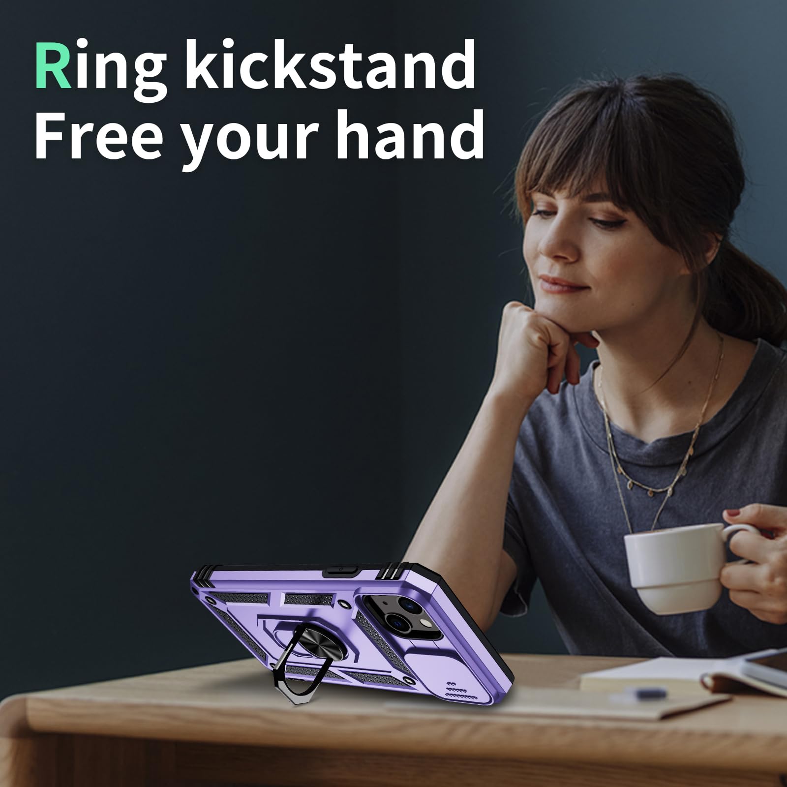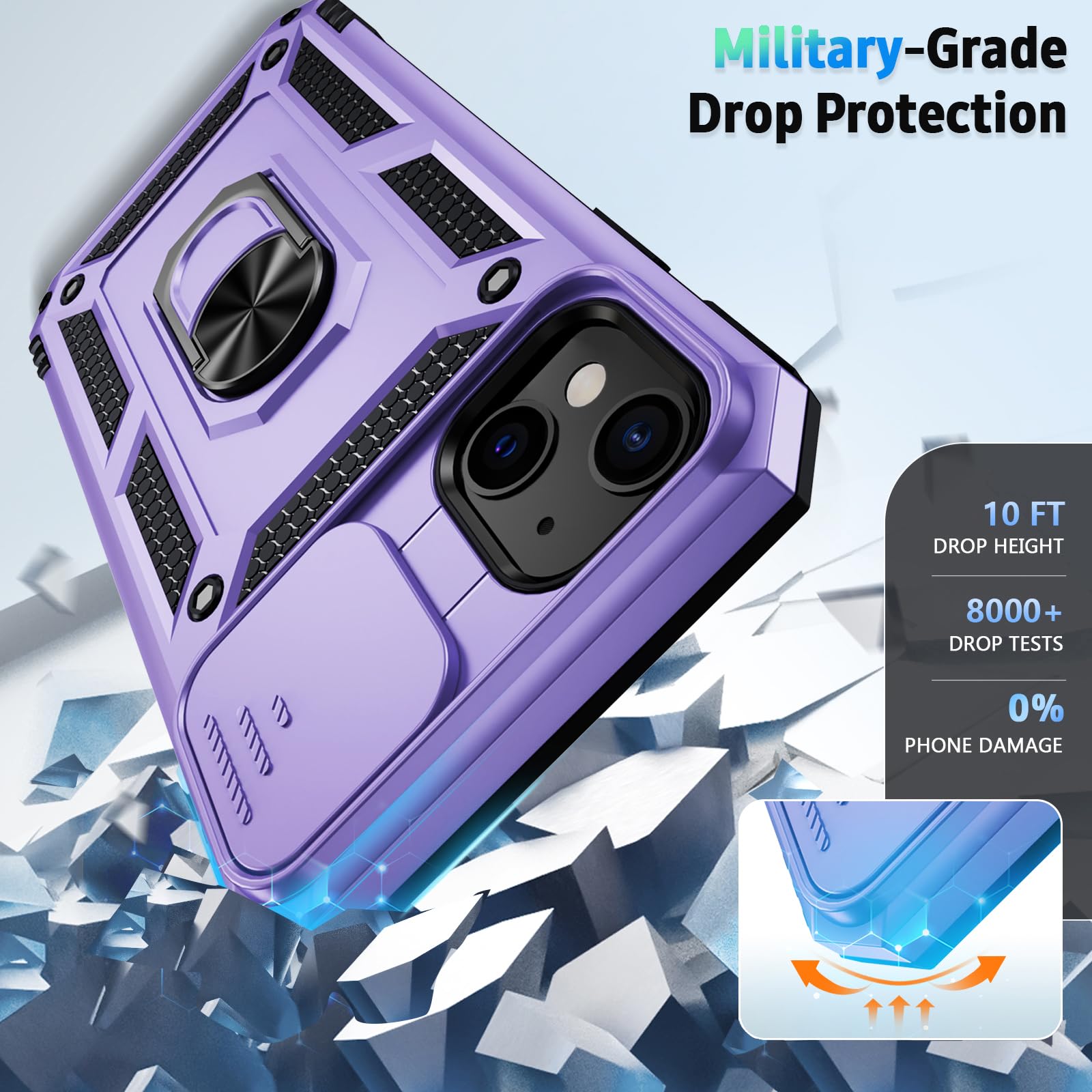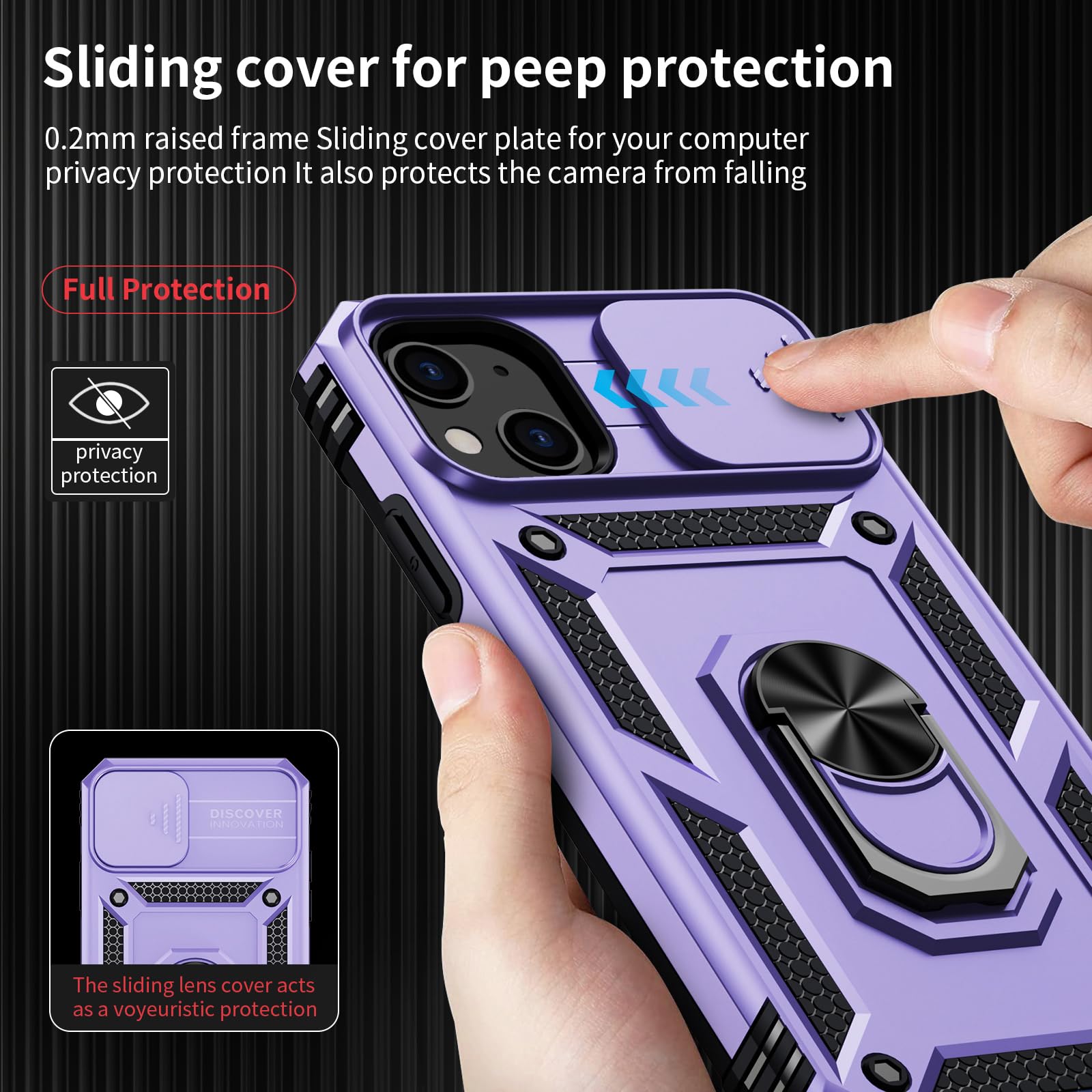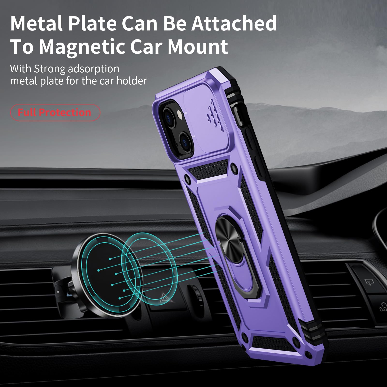 📱【Durable and Delicate Phone Case】 Armor Case with sliding camera cover specially designed for iPhone 13 Mini. The precise cutout design of this phone case ensures perfect alignment with buttons, camera, speakers, and ports of your phone, allowing for easy access and comfortable pressing!⚠️ Please note: The metal ring on the back of this case renders it incompatible with wireless charging.