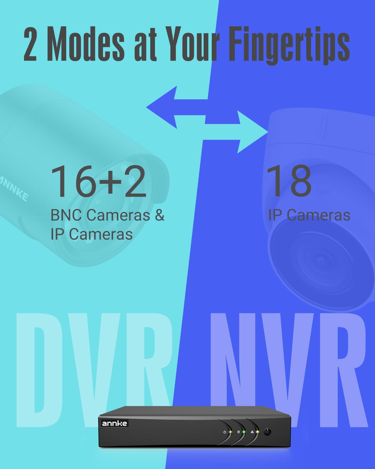 5-in-1 Hybrid DVR – The expandable hybrid digital video recorder, combing the features of DVR/NVR/HVR, supports up to 16 pcs TVI, AHD, CVI, CVBS & extra 2 IP cameras. So, you have full-range security camera choices for your property. Add any camera type you want to the DVR for seamless integration.