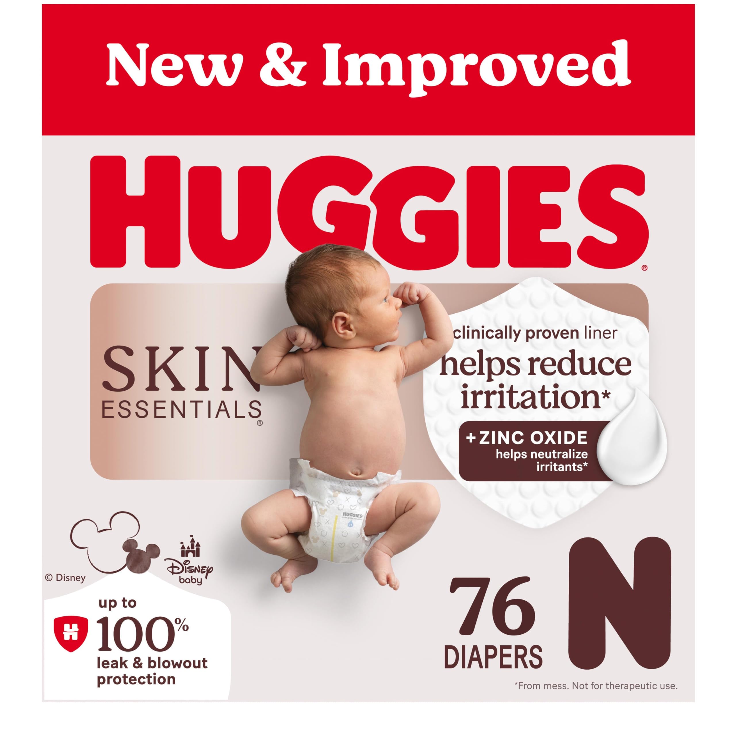 Huggies Size Newborn Diapers: 76 Huggies Skin Essentials Baby Diapers, Size Newborn (6-9 lbs); packaging may vary