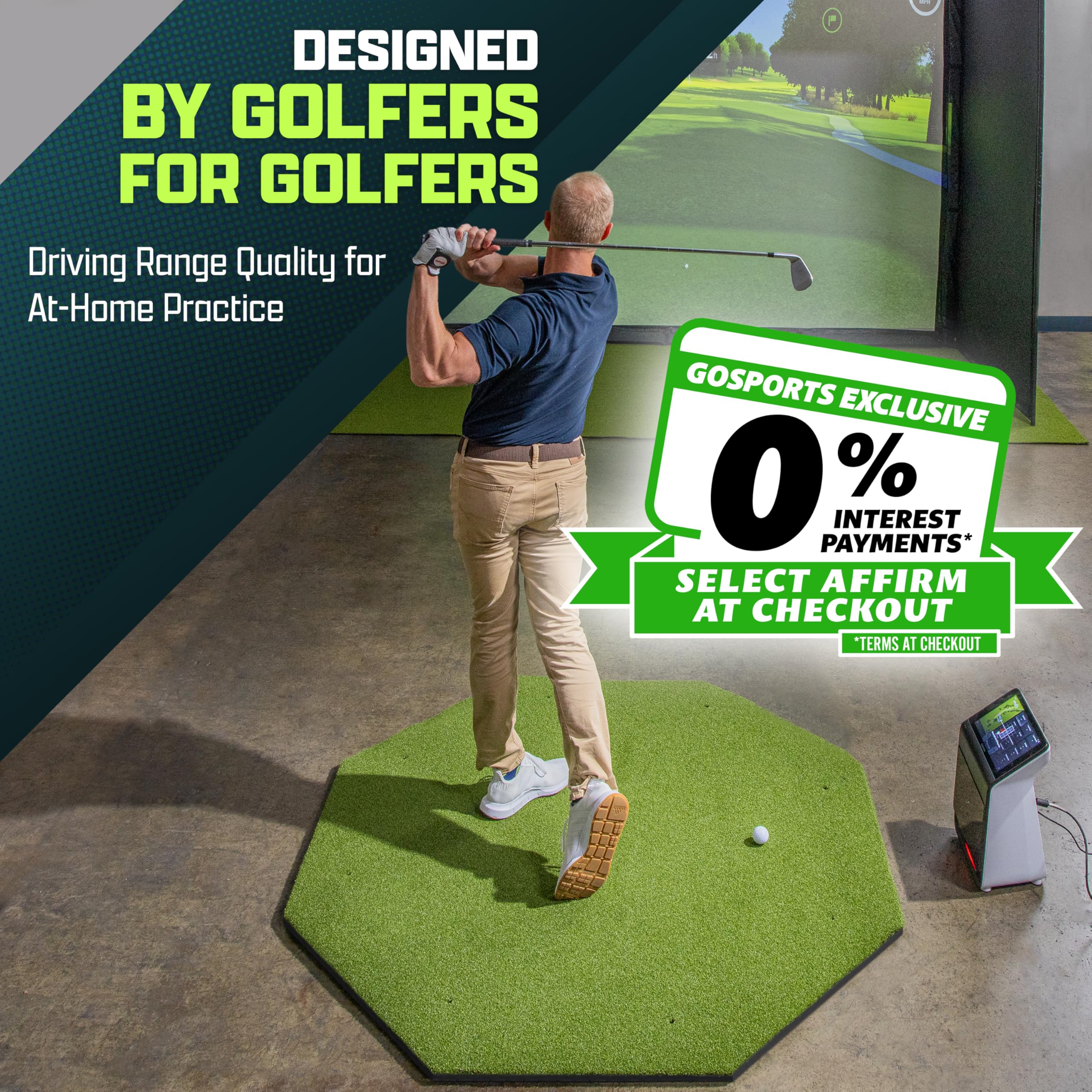 The GoSports 5 ft x 5 ft Octagon Golf Hitting Mat is an elite training tool that provides the perfect platform for golfers of all abilities to perfect their swing. The octagon shape is designed to maximize the lifespan of the mat, so you can get the most out of your turf. Simply rotate the mat and hit from one of the 8 different tee positions as one side begins to wear. The mat also includes 3 rubber tees with varying heights (1.5 inch with tee holder, 2.5 inch, and 3.25 inch) so you can practice any shot! Now you don't have to sacrifice your lawn or hope for perfect golfing weather. The ready-to-go mat lets you save your lawn when practicing outdoors and is a great addition to any indoor garage or basement setup for year-round practice. We engineered our golf hitting mat to withstand thousands of swings and practice hours, making it ideal for the golfer on the go. Sharpen your golf skills anytime anywhere with the GoSports Golf Hitting Mat!.