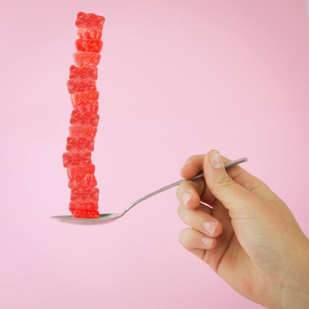 Fat free gummi candy. 150 calories per serving. Perfect for sharing snacking, decorating and topping desserts