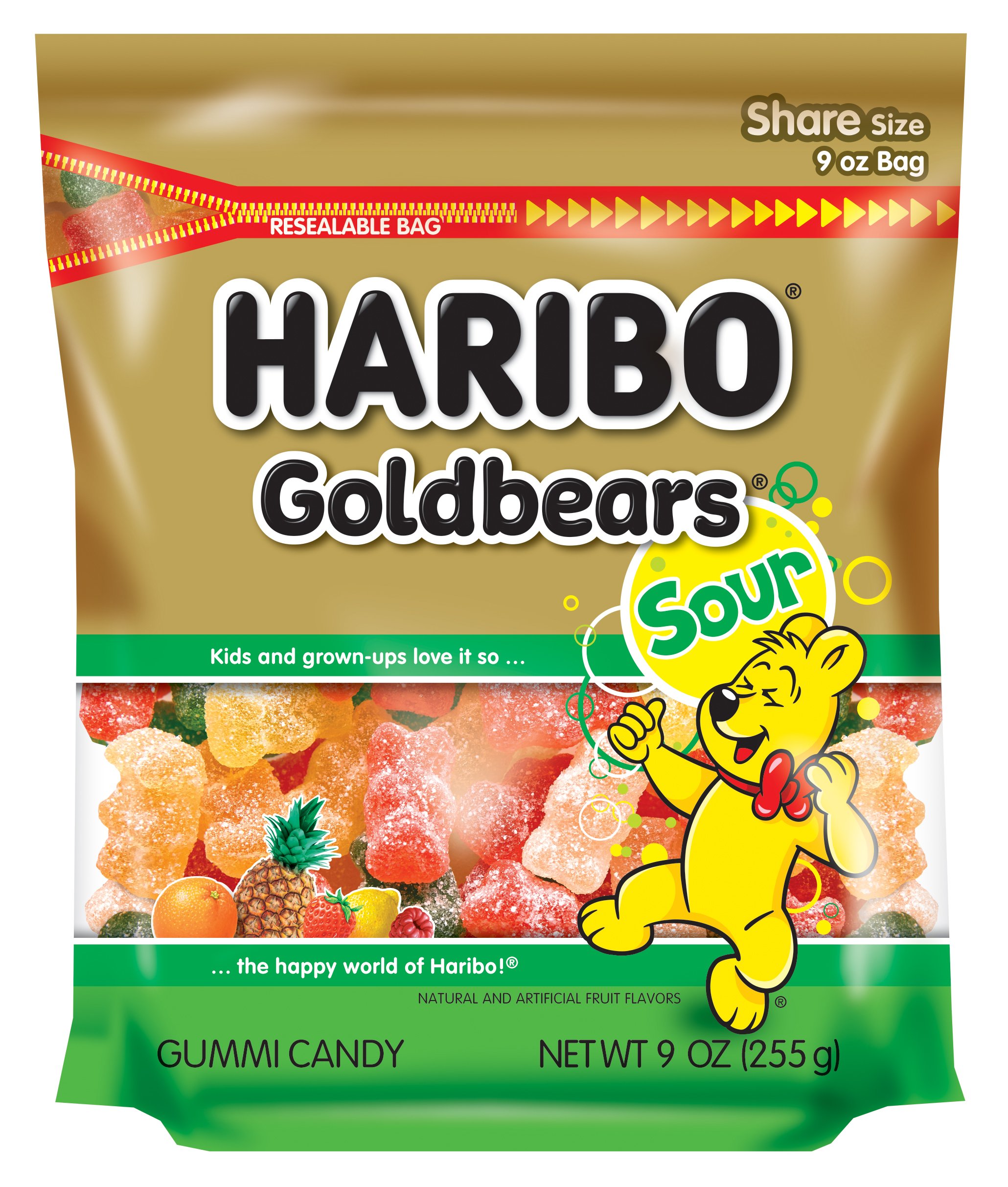 HARIBO Sour Goldbears Gummi Candy, 9 Ounce Stand Up Bag (Pack of 6)