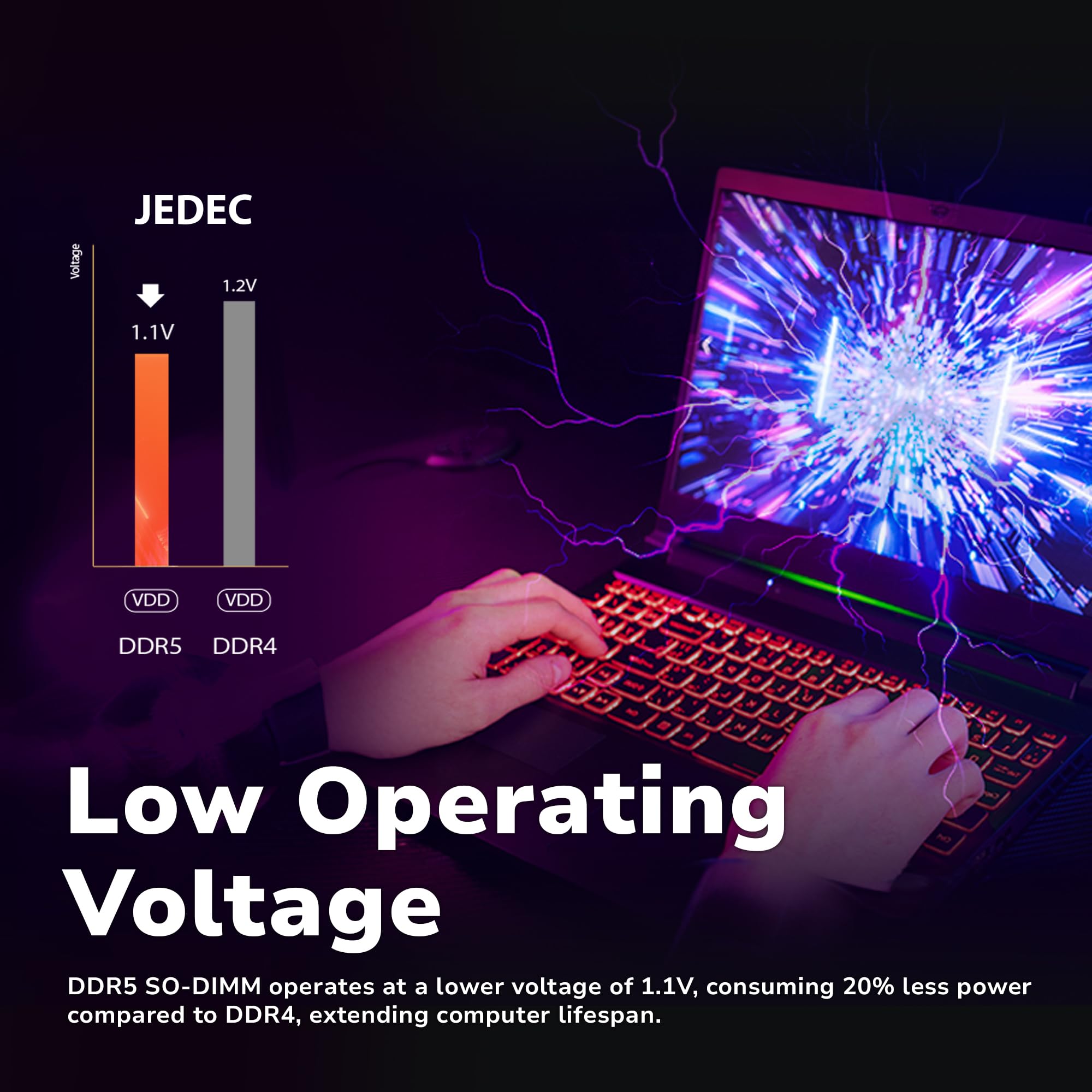 Energy Efficient Power Management: Our DDR5 memory offers advanced power management, using less power than DDR4. Enjoy longer battery life and efficient performance all day.