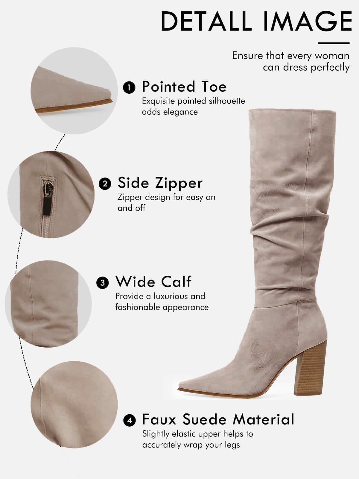 MATCH: The fashion pointed toe knee-high boots go great with a pair of jeans or something a little more formal, like a dress, a romper, or another stylish outfit.