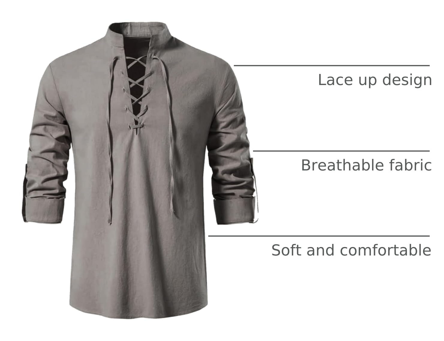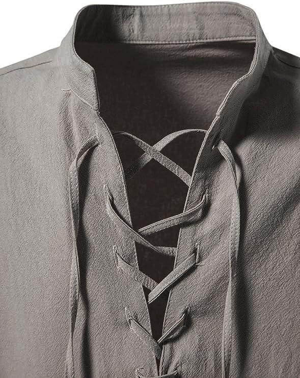 LACE UP DESIGN: The medieval renaissance shirt has a novel design with a laced design. The drawstring design makes the overall look more retro. And this shirt can be matched with any pants: for example, casual pants and white shoes.