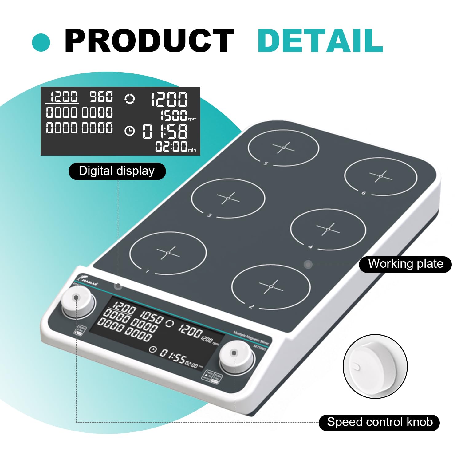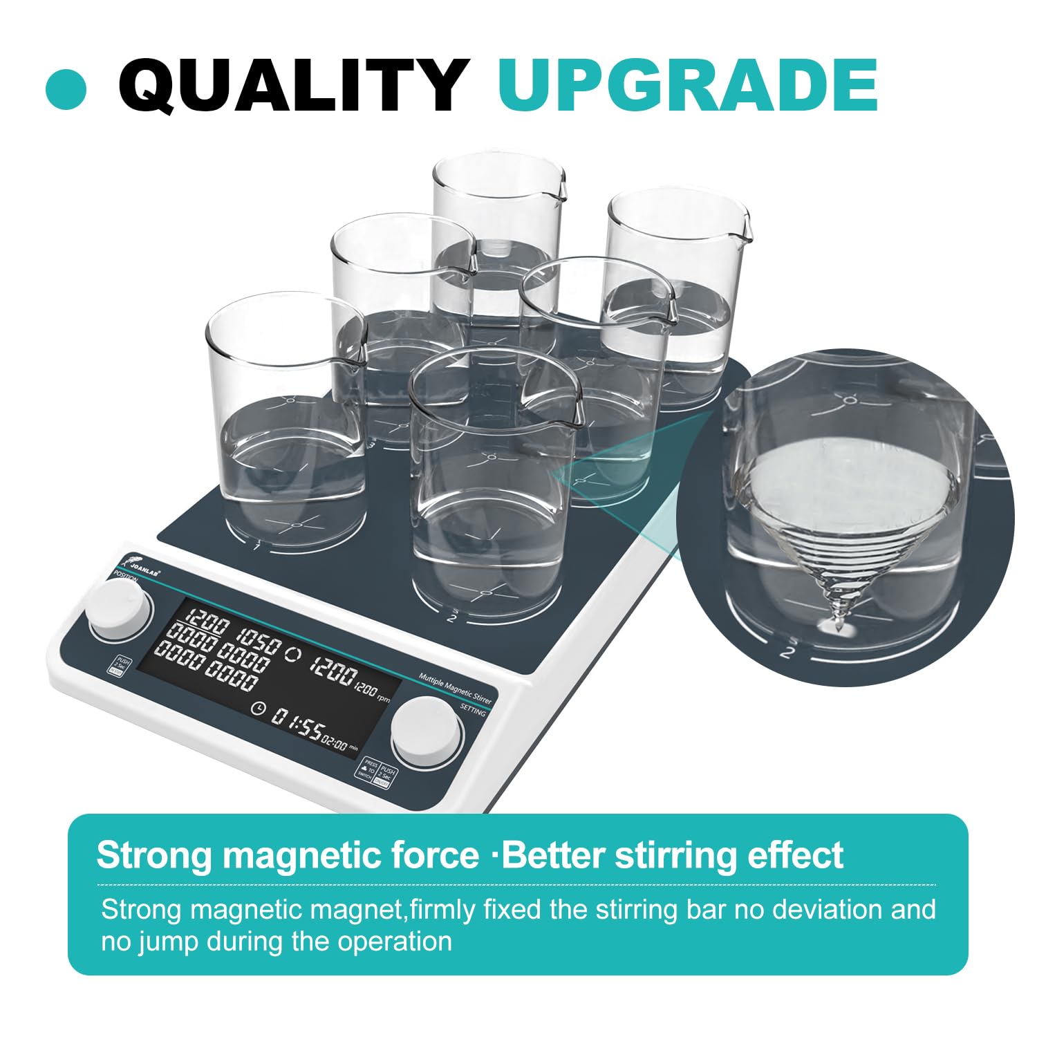 Maintenance-free Brushless Motor: Our multi magnetic stirrer plate is with brushless motor , more stable without maintenance and worry, low noise, can ensure stable speed adjustment,capable of providing a long working life under repeated and continuous use.