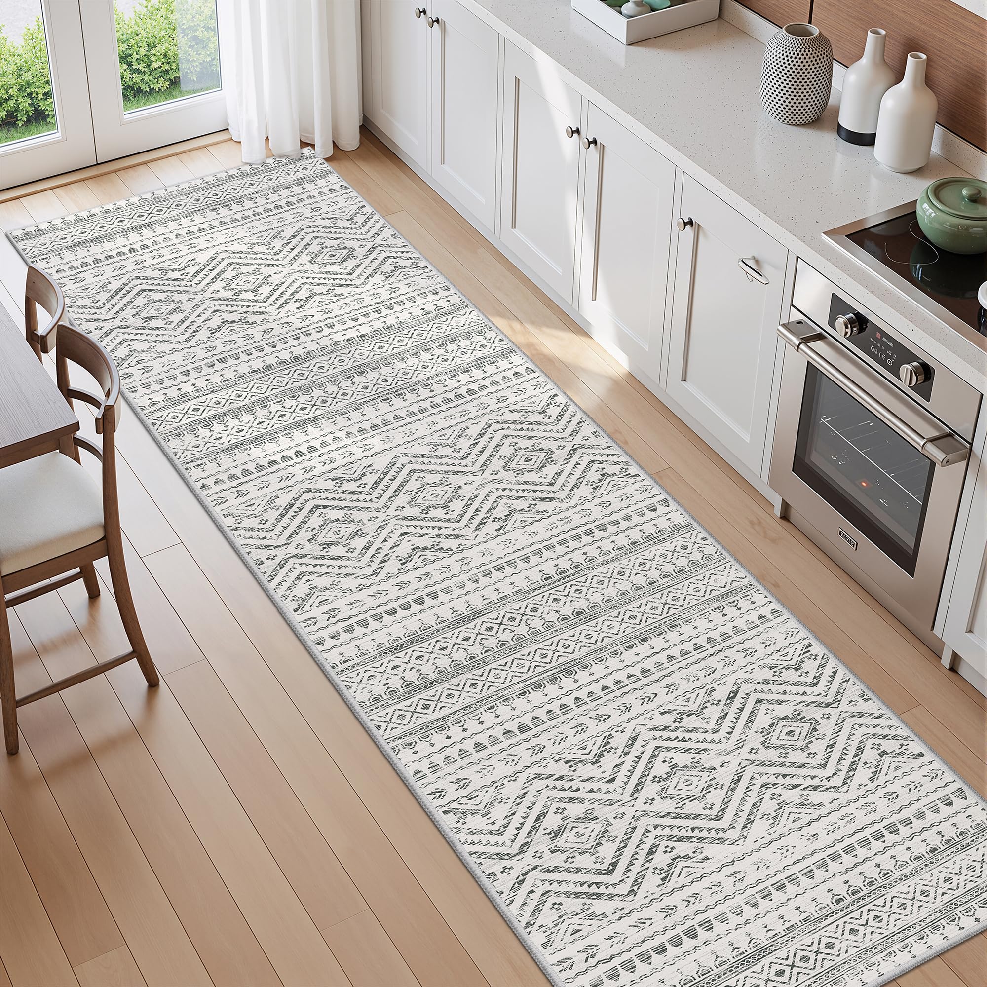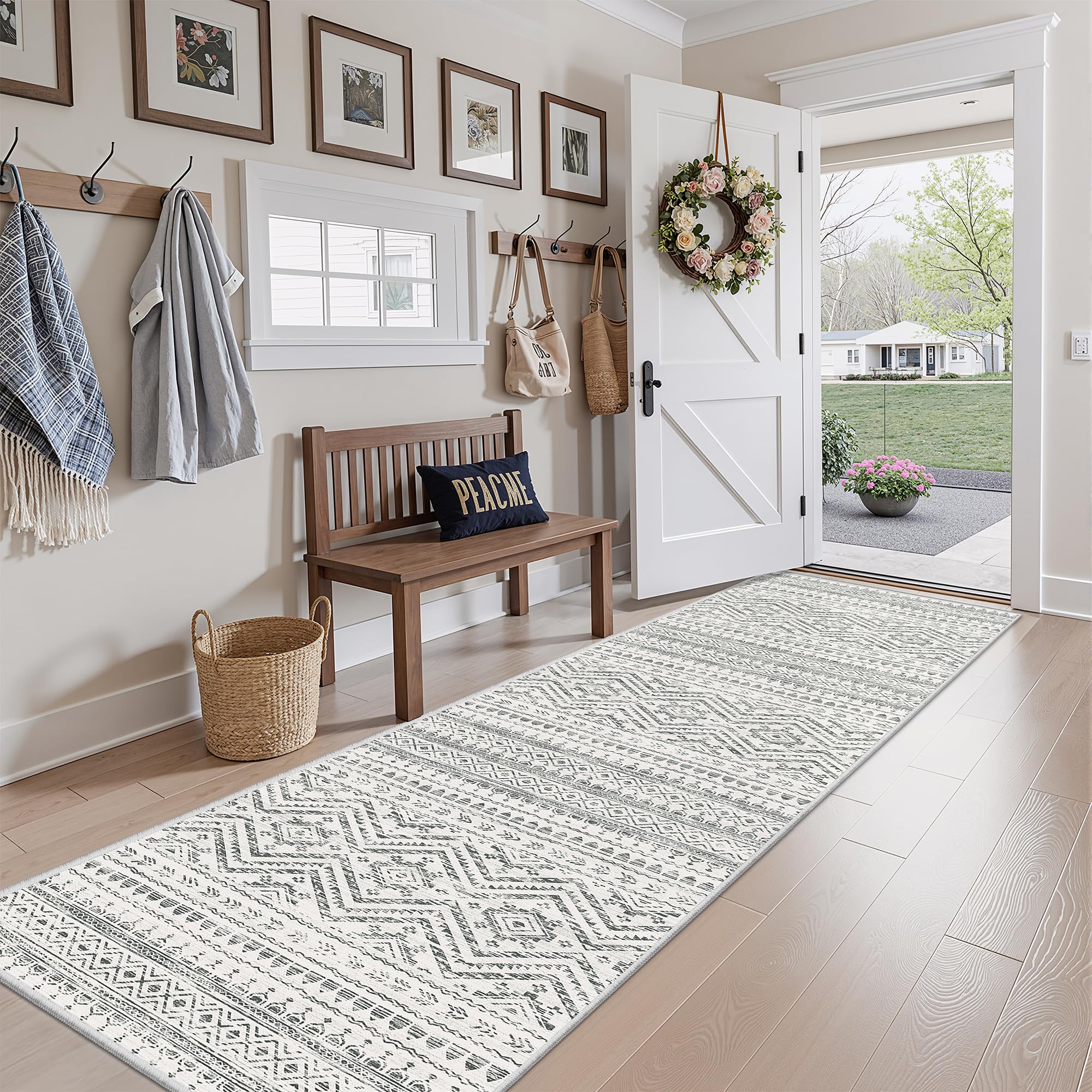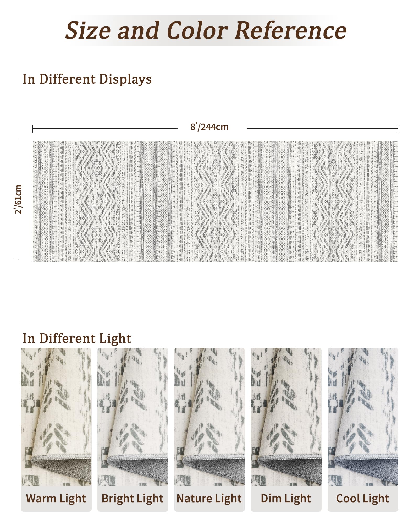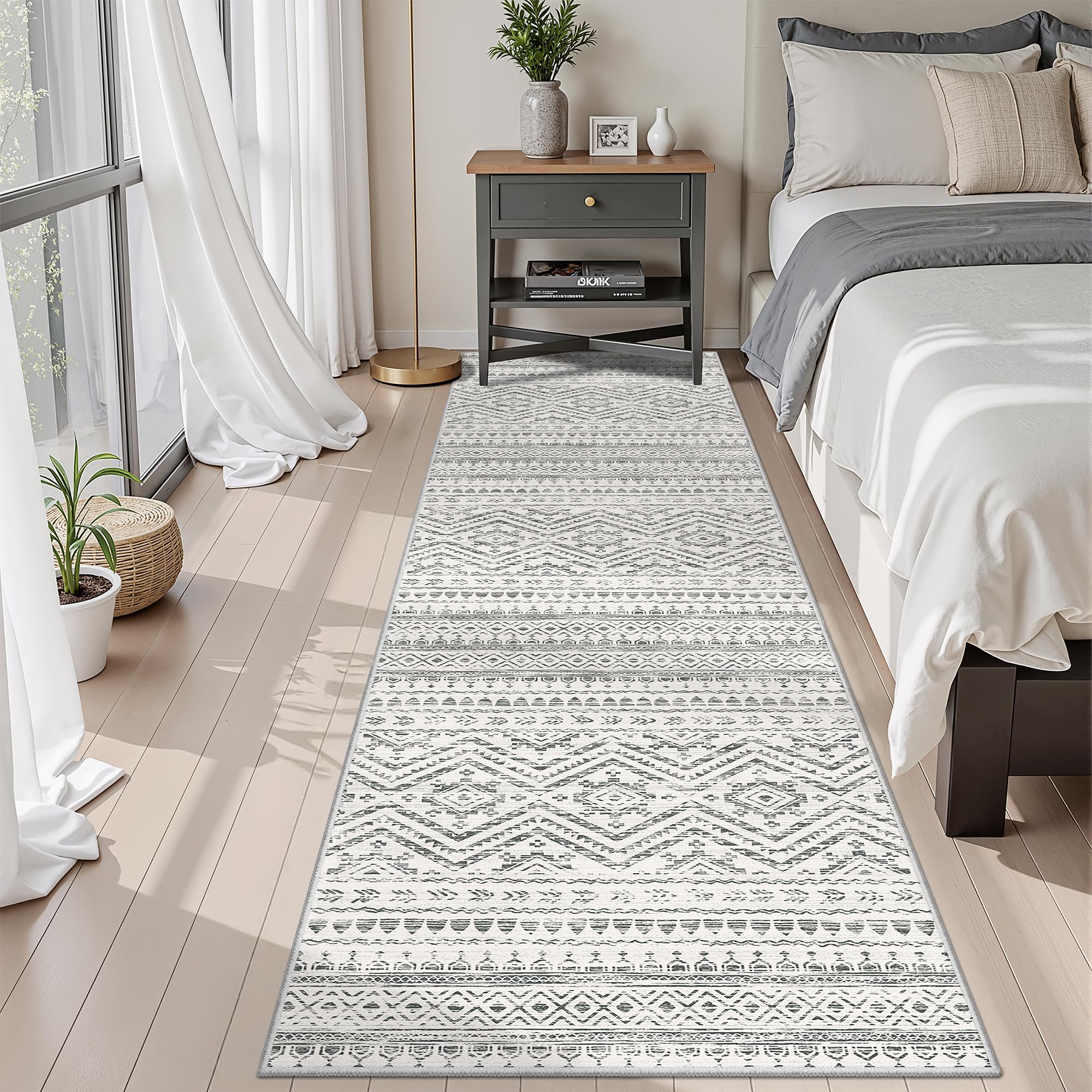 Miukiki 2x8 Runner Rug Moroccan Washable Hallway Runner Rug Non Slip Indoor Floor Kitchen Rug Foldable Carpet for Bathroom Laundry Room with Low Pile(Grey,2'x8')