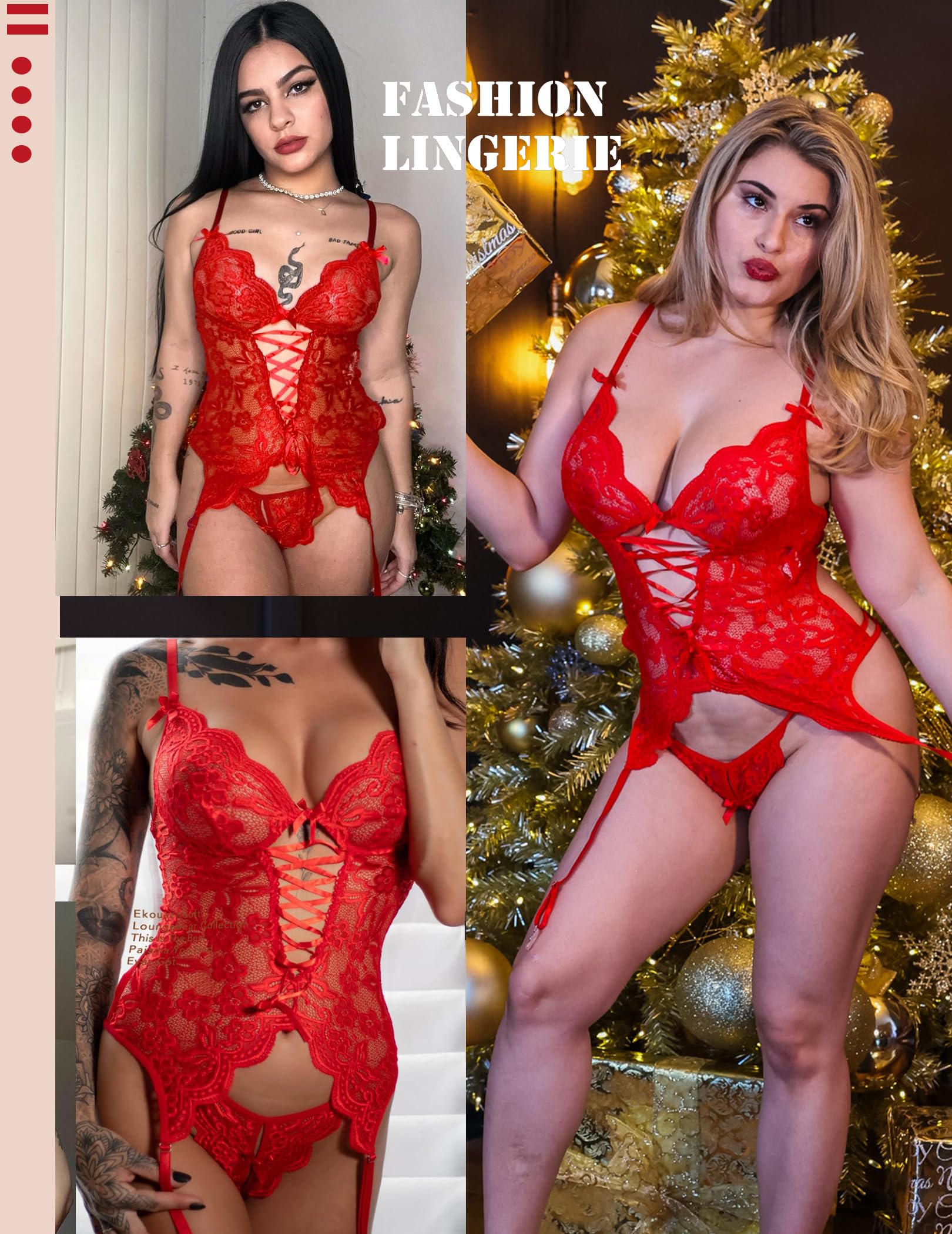 Soft Lace Material: The lingerie set with garter belts is made of 95% Polyester 5% Spandex. The soft lace makes you feel free.