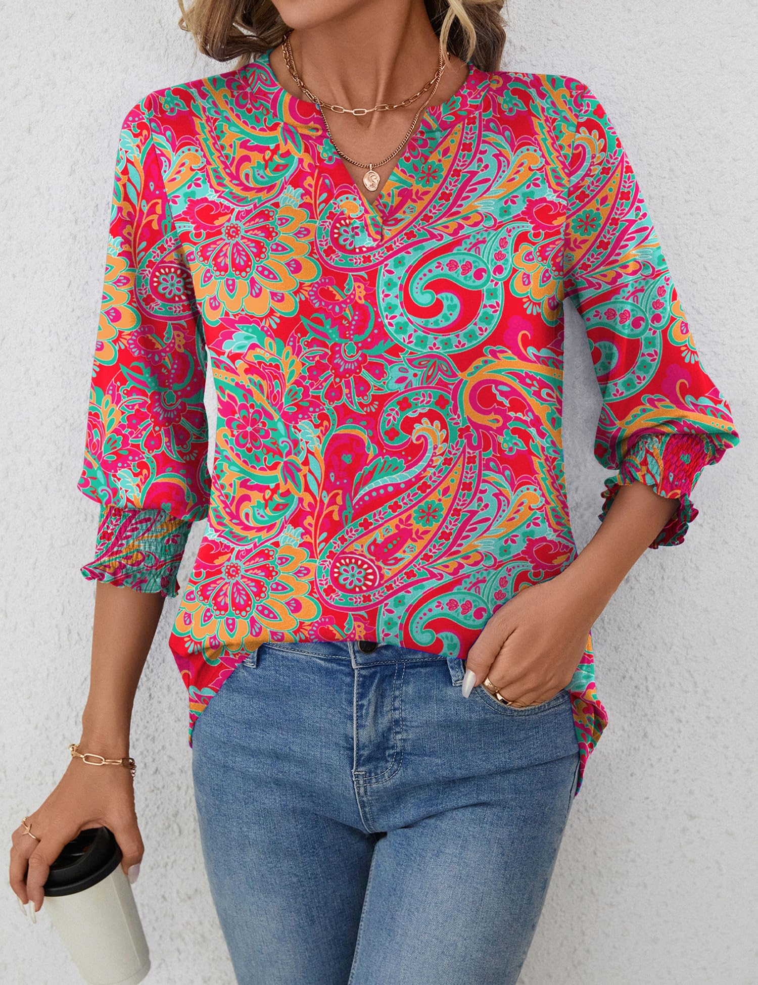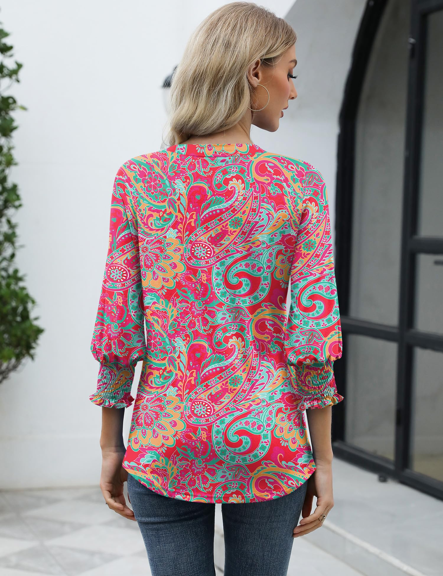 【Soft and Flexible】LOMON 3/4 smocked sleeve top is skin-friendly and comfortable for everyday wear.Lightweight, soft & high quality fabric (breathable but not see-through).