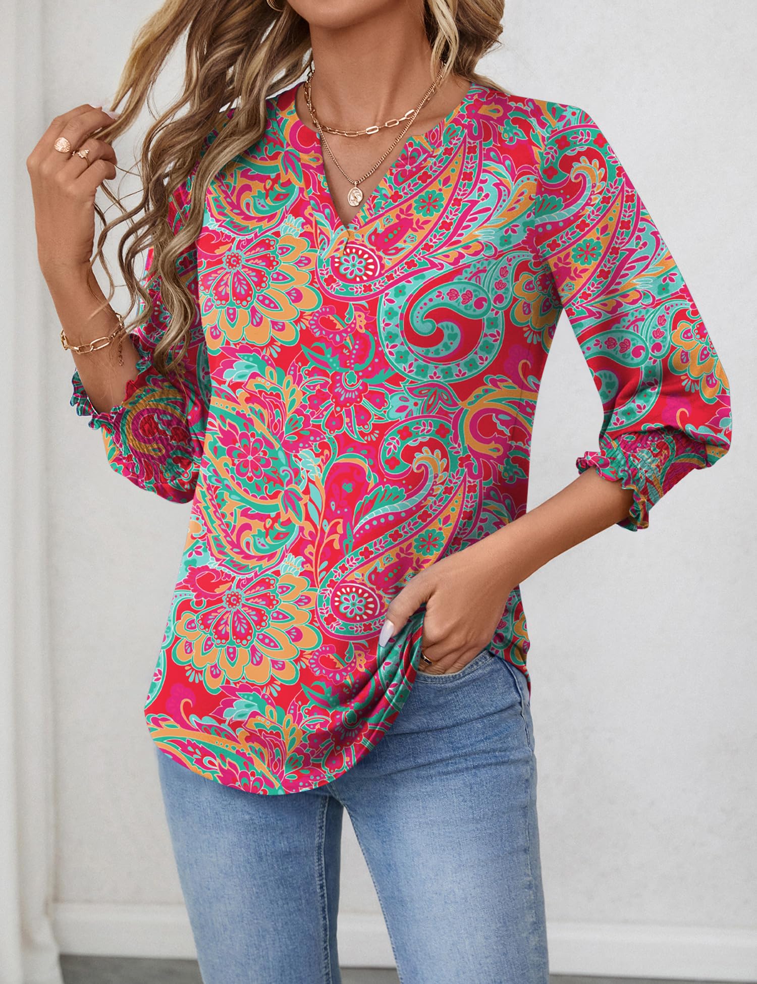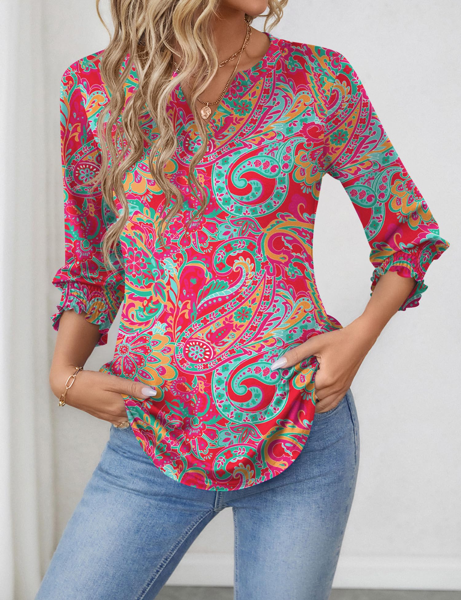 【Ruffle Cuffs】Women's ruffled top is both formal and casual with 3/4 sleeve design for comfort and convenience.