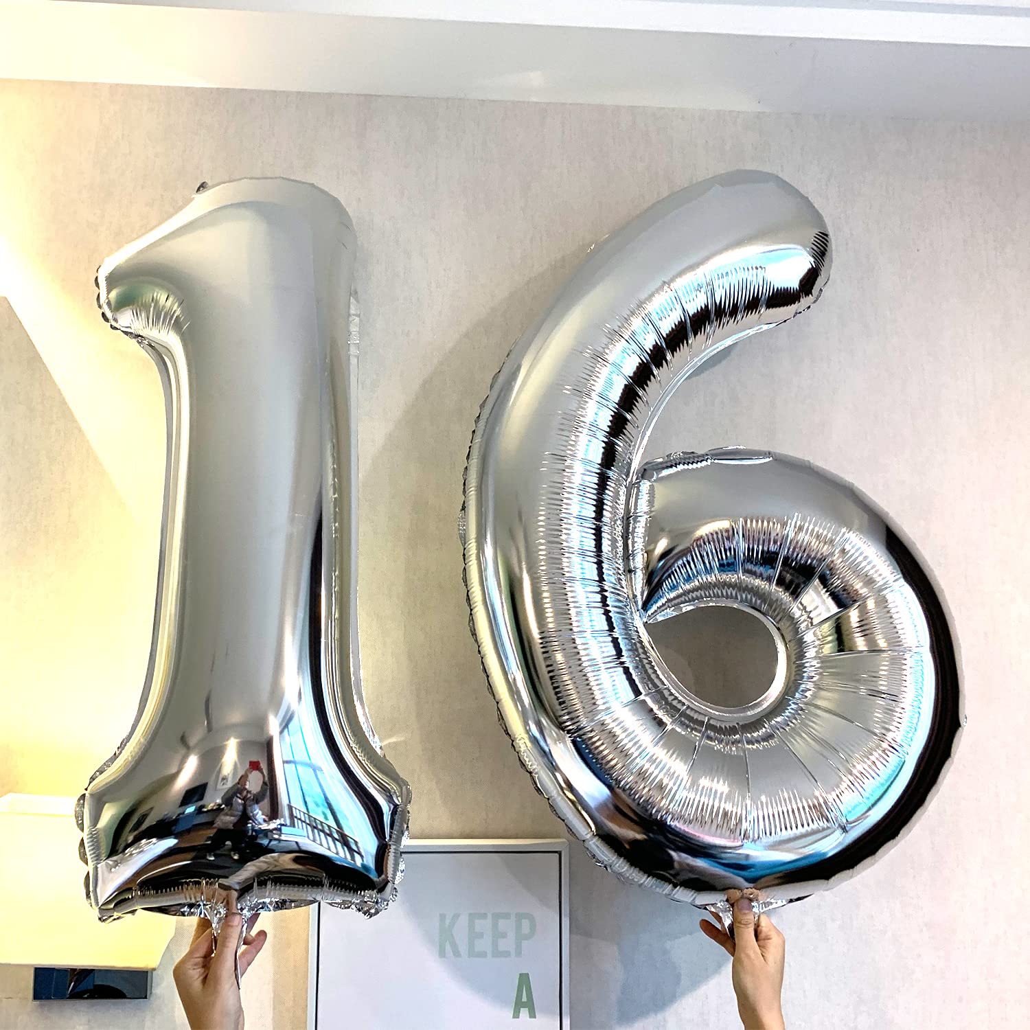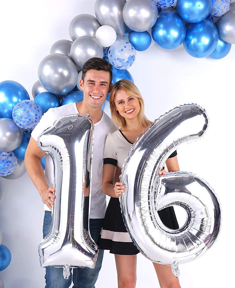 16 balloons, Silver number 16 foil mylar balloon 40 inch number balloons, Large number 16 balloons is perfect for 16th birthday anniversary party decorations。