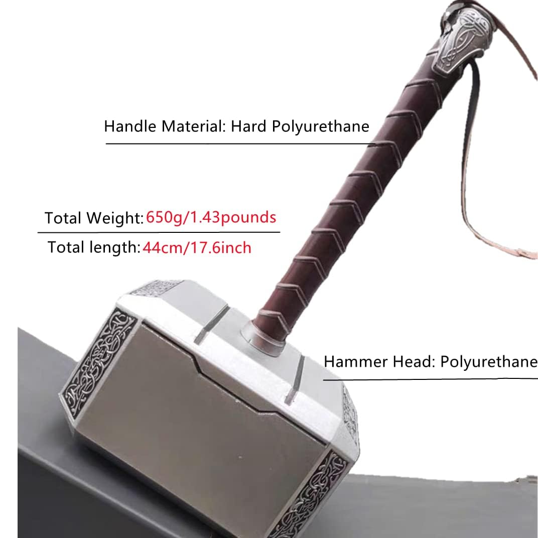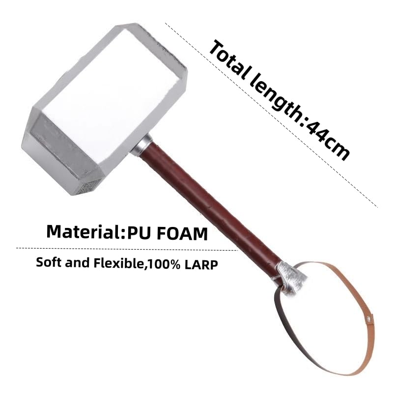 Description Soft & Safe :Made of High Endurance Safe PU Foam Material,Soft and Flexible,100% LARP br> Brand: damdos, Large Prop Measures app.: 44cm x 22cm x 13cm Detail: Full Size,Genuine Leather Strap,Ideal for LARP , Role Players , Fancy Dress , Wall Mounting , Collectors ,Birthdays Gifts Handy and Lightweight:The hammer is Embellished Black and Silver Parts Complement Each Other Package Contain: 1Pcs Hammer