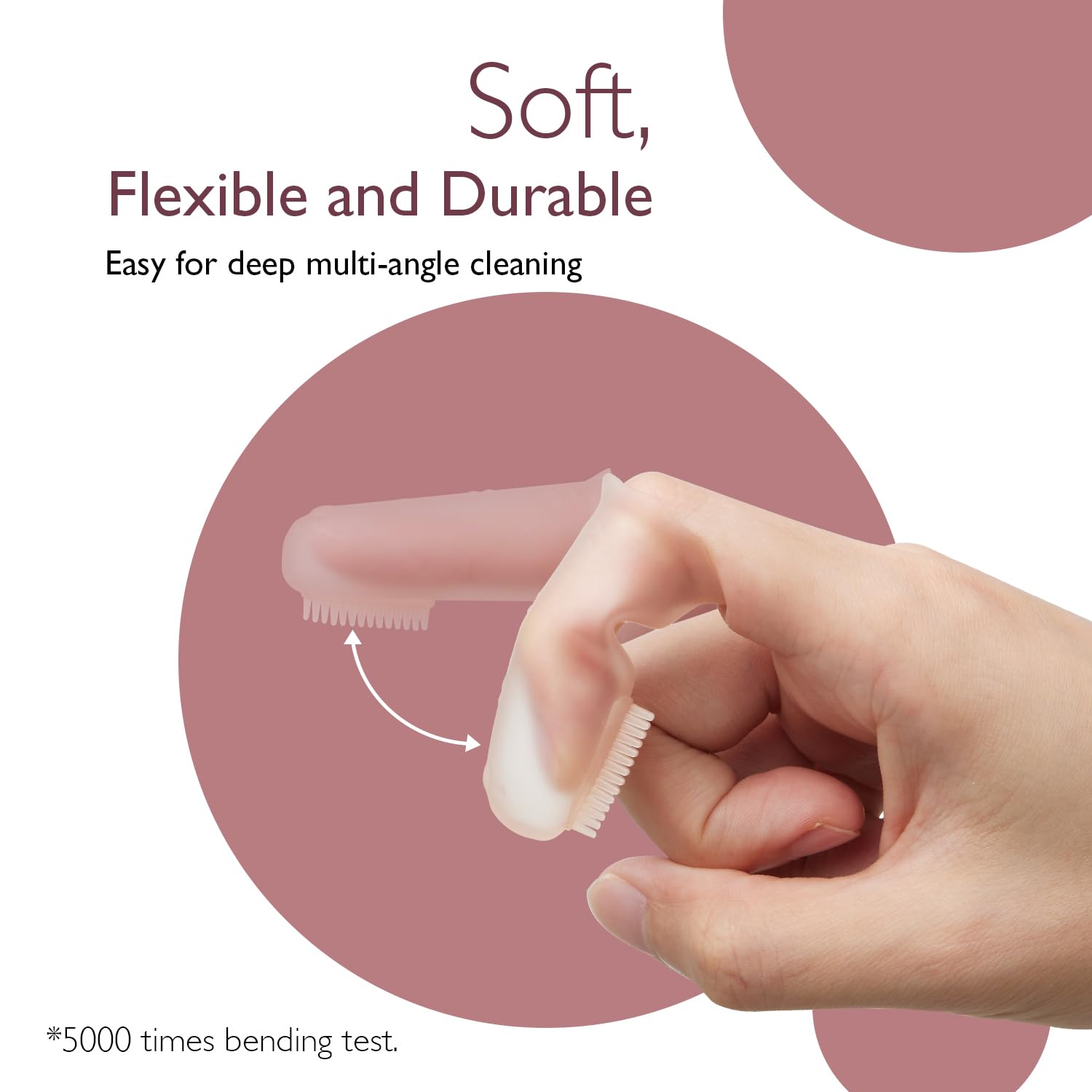 2 different brush heads - Momcozy silicone finger toothbrush includes 2 different brush heads, the long strip one for quick cleaning of large areas, and the round one can be used for fine sanding on stubborn areas